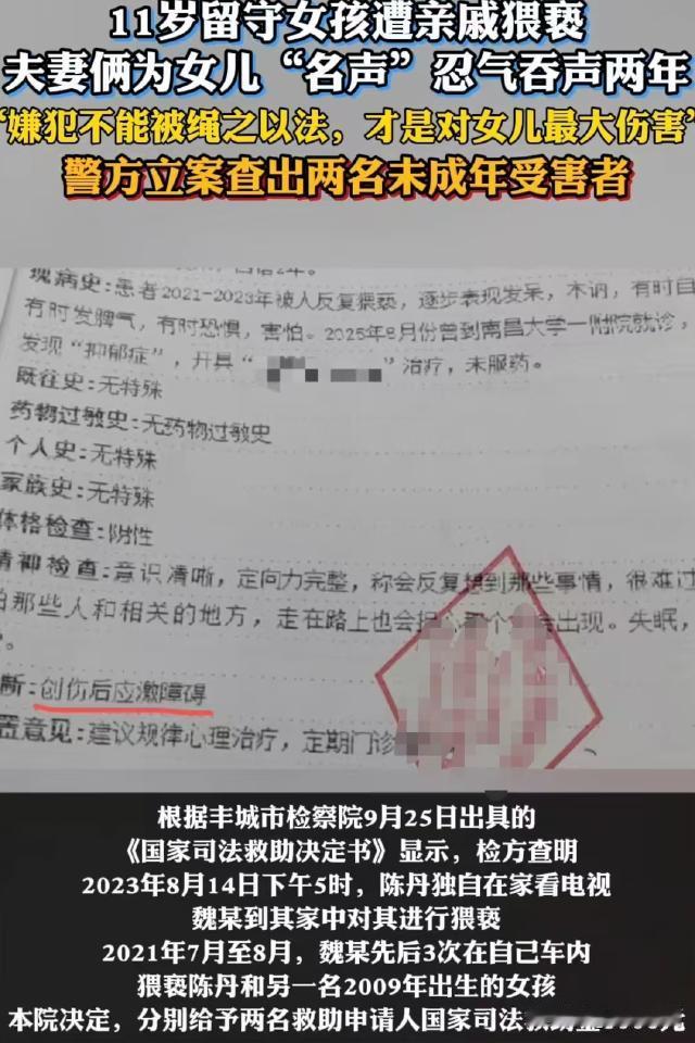 江西丰城,11岁女孩丹丹是留守儿童,邻居兼亲戚魏某多次对她实施猥亵,丹丹告诉爷爷
