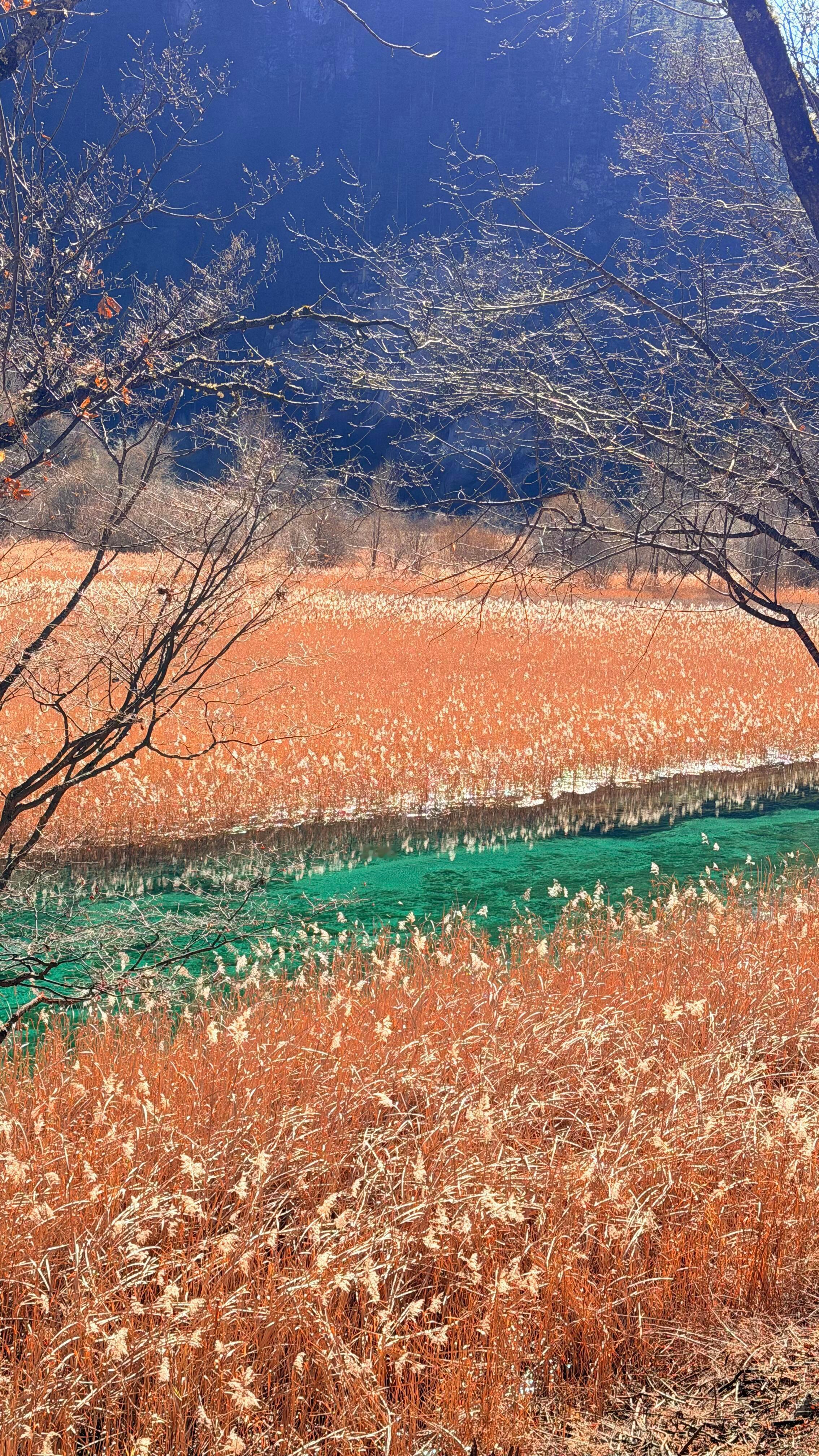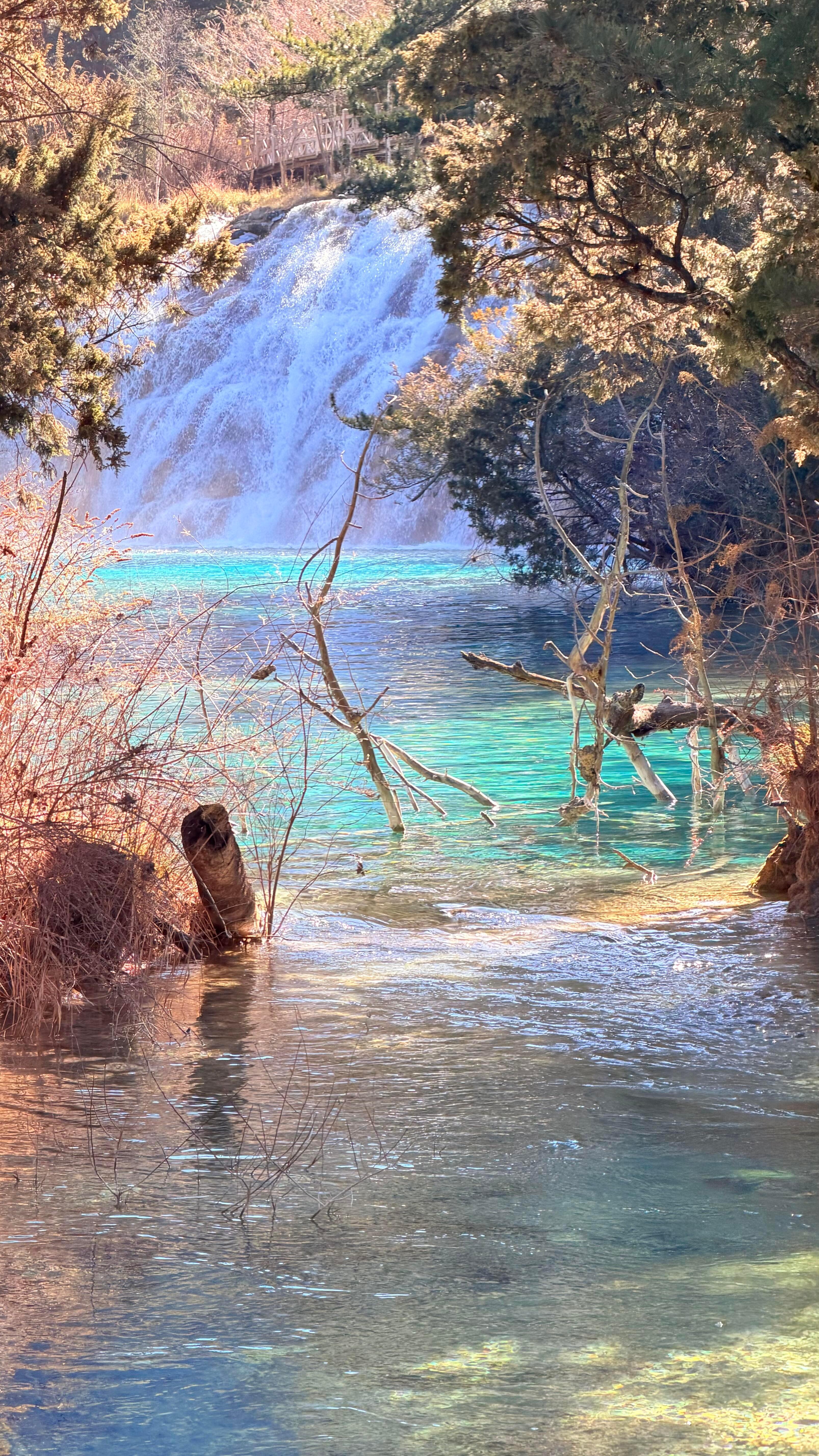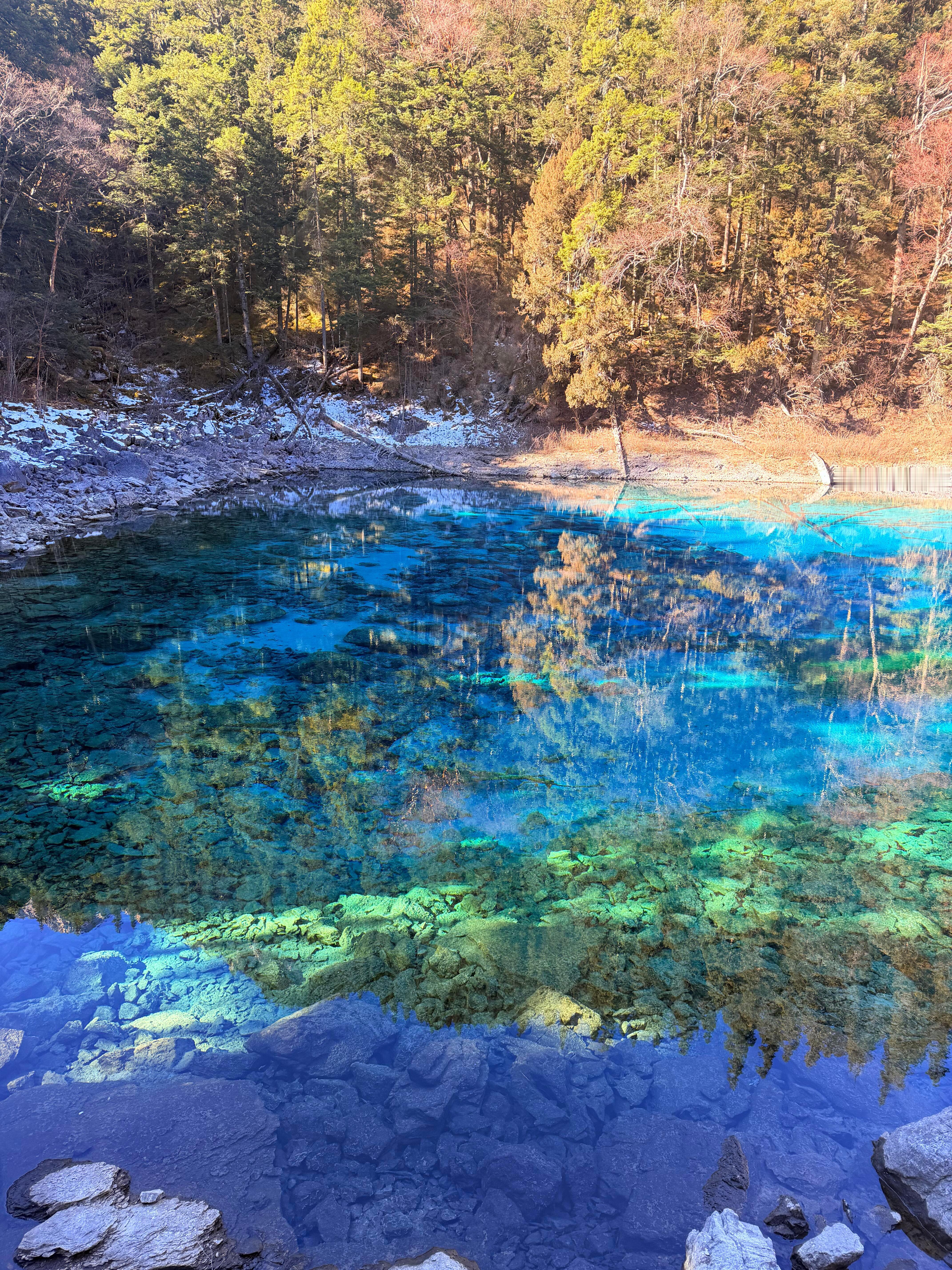 雪后的九寨沟,秋未尽,雪以至,白色与彩色辉映,真令人如痴如醉。