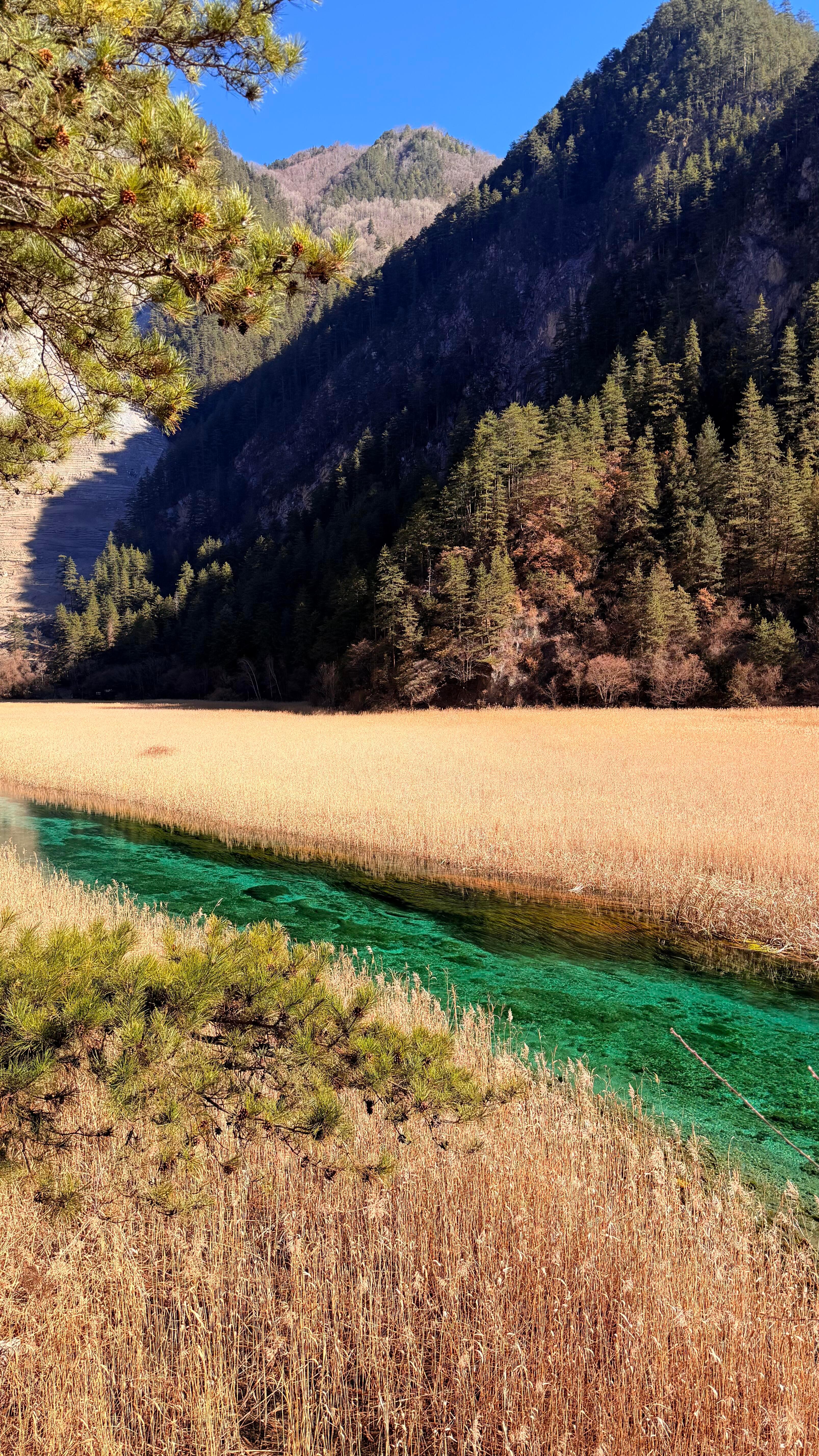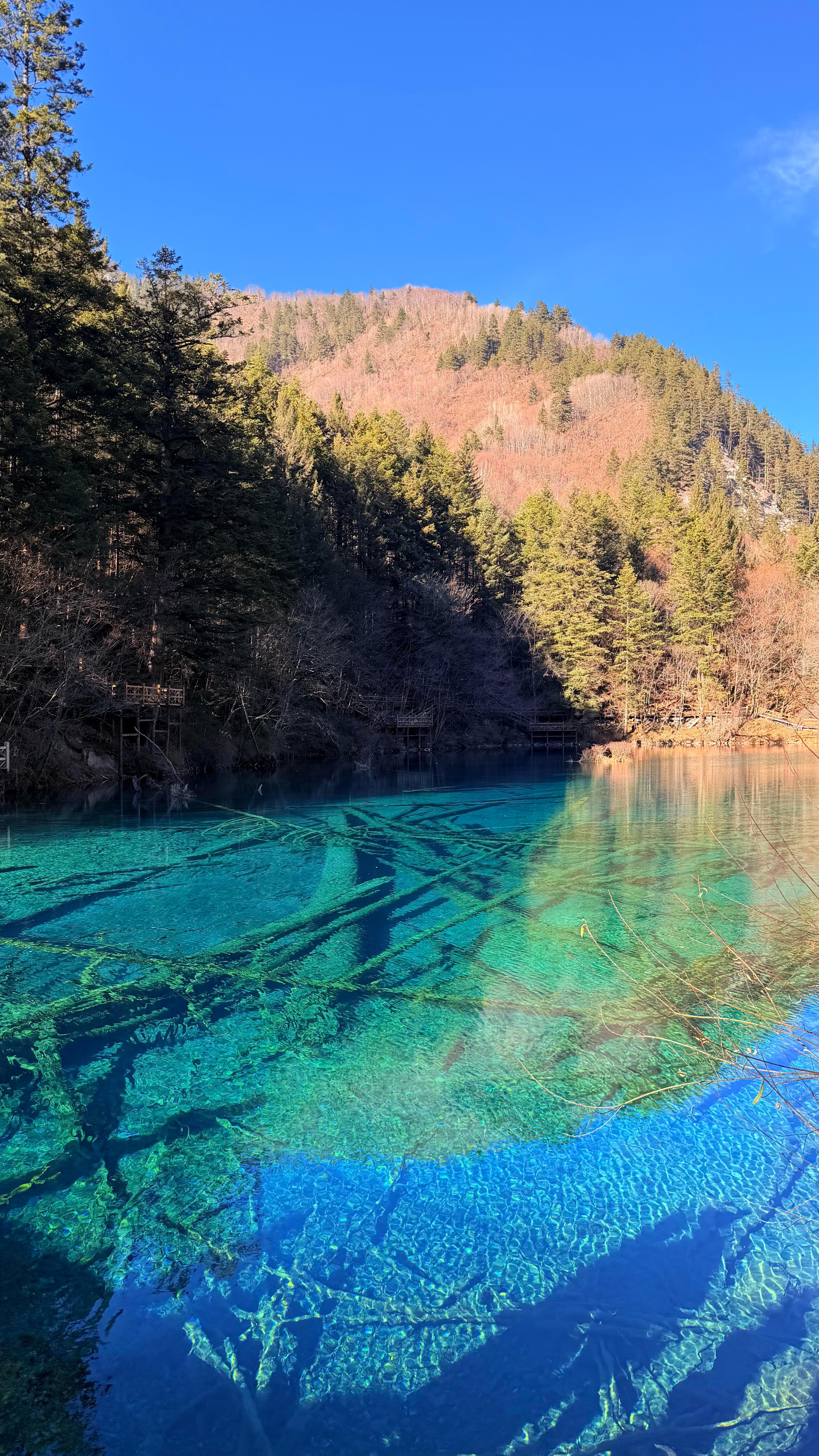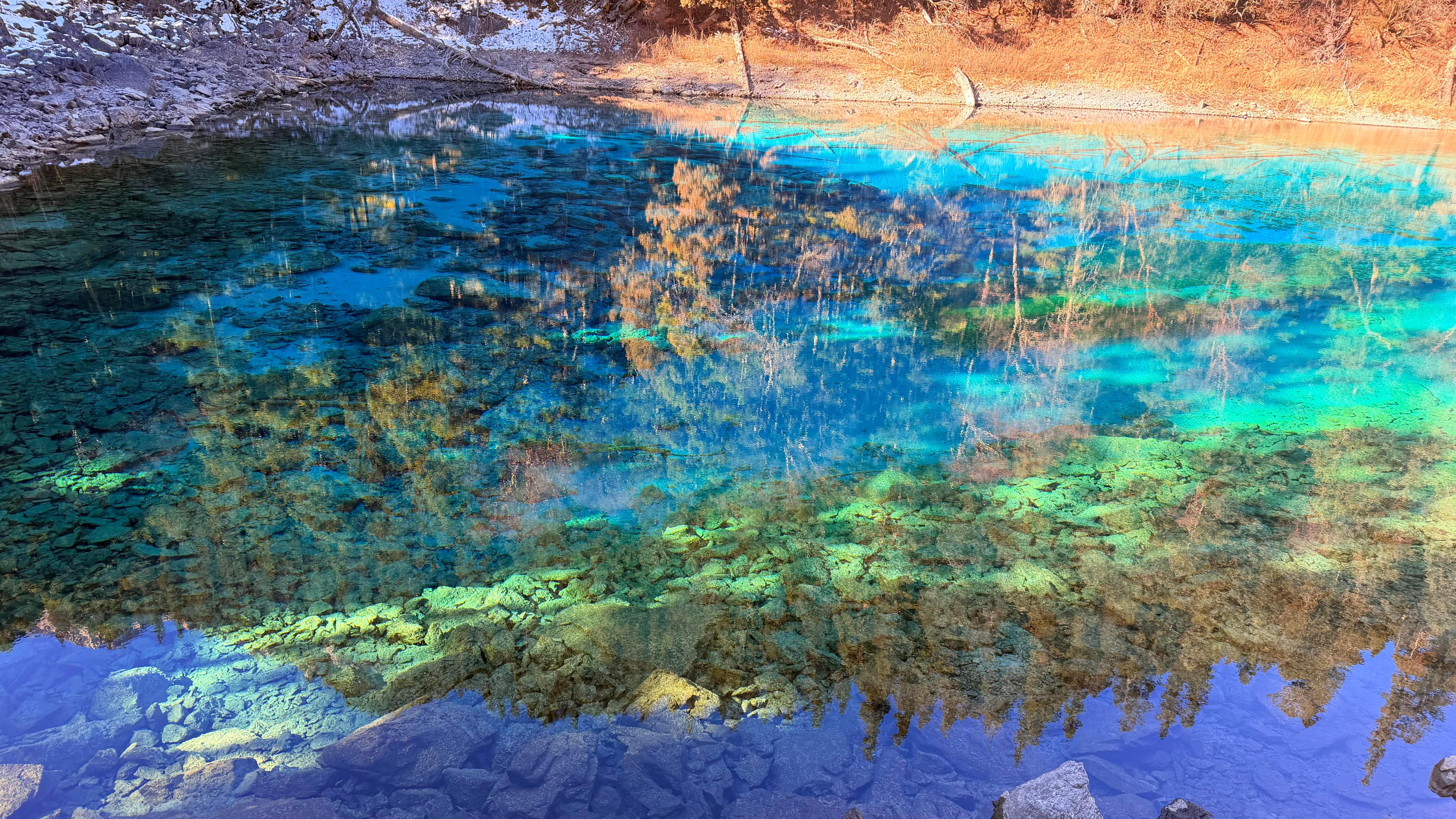 雪后的九寨沟,秋未尽,雪以至,白色与彩色辉映,真令人如痴如醉。