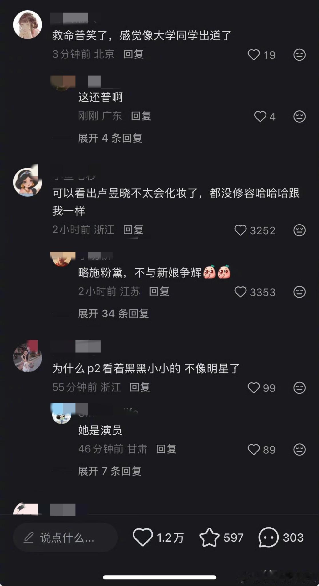 卢昱晓当伴娘被批太普通,网友这审判是不是太过分了!演员卢昱晓最近给朋友当伴娘,现场照片一流出,立马被推上风口浪尖。 不少网友直接开嘲,说她“长相太普”、“放在人堆里找不着”,这波对女明星私下状态的严苛审判,可真让人开了眼。 要知道,卢昱晓在戏里可是甜美灵动的女主角,这次作为伴娘,她只是穿了条简单的浅色裙子,妆容清淡,完全就是一副贴心闺蜜的样子,根本没想抢风头。 结果这竟然成了被嘲的理由。 难道女明星私下也必须时刻保持红毯级的全副武装吗? 连新娘本人都亲自下场力挺好姐妹,可见当事人根本不在乎。
