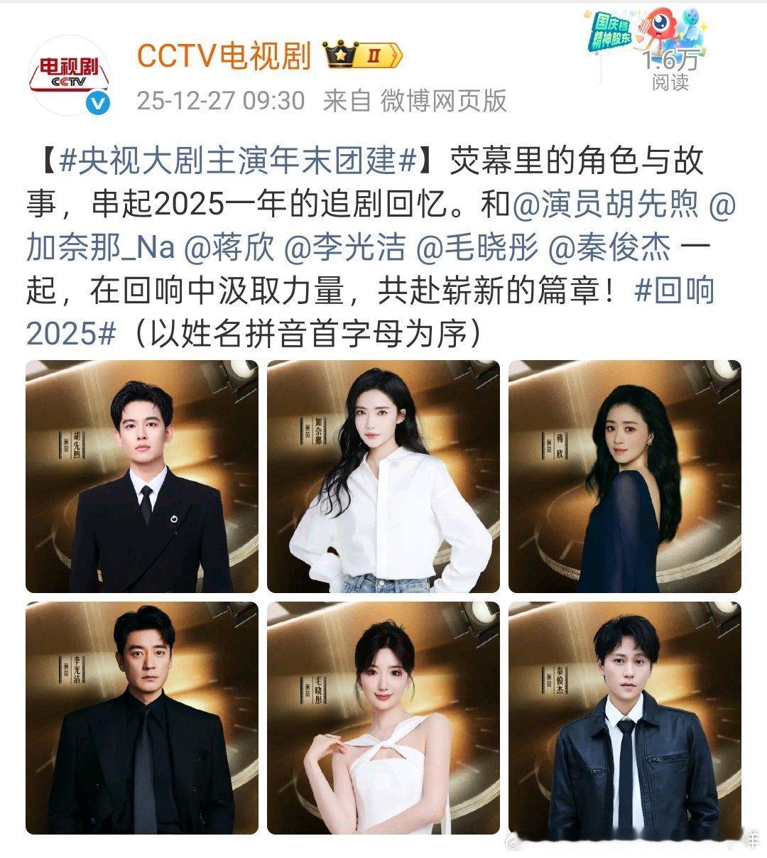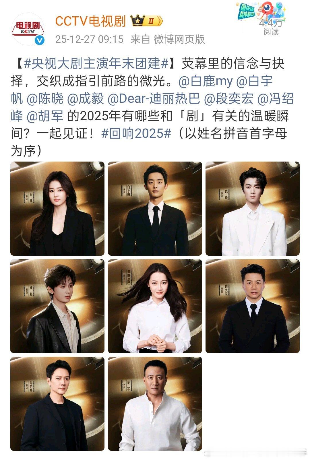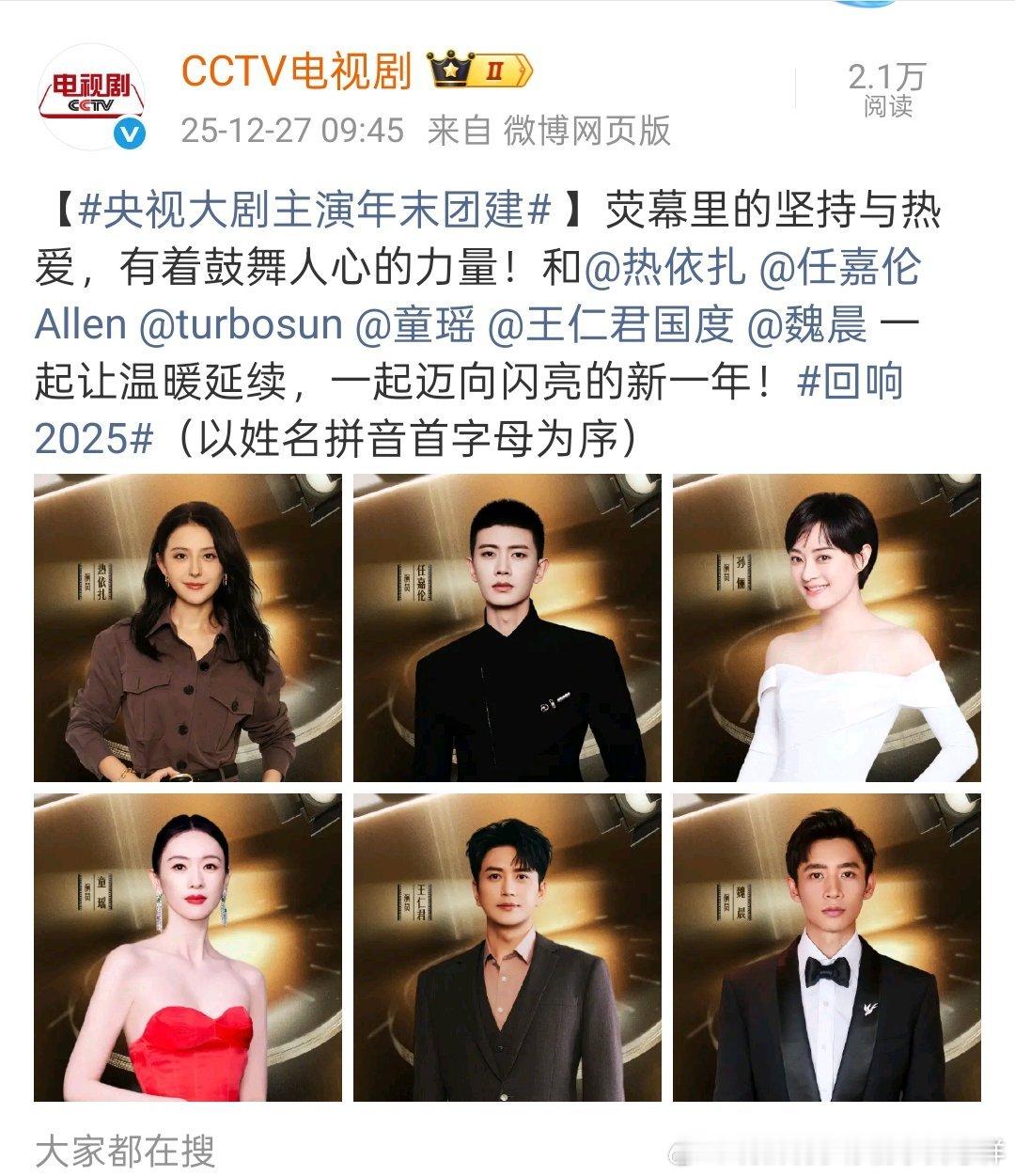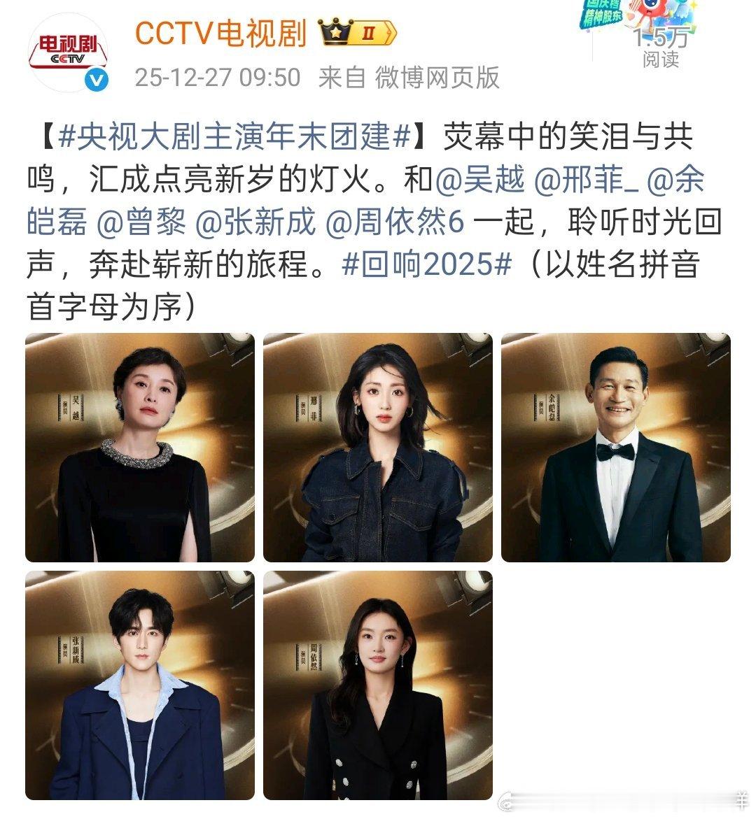cctv电视剧发了央视大剧主演年末团建,每一组都是精心安排的吧