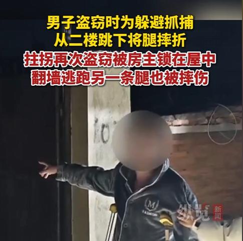偷上瘾没记性!腿断了心还坏,这窃贼纯属自寻死路! 黑龙江佳木斯,一男子堪称盗窃界 “反面典型”。此前他盗窃被警方追捕,慌不择路从二楼跳下,摔断一条腿,落下终身伤病本应安分守己,可他半点没悔改,反而拄着拐杖再伸贼手。12 月下旬,他趁房主外出,一瘸一拐潜入室内,翻箱倒柜找出 650 元现金,揣进兜里盘算着挥霍,正美滋滋准备溜走,不料房主提前回家,随手锁了房门,把他困在屋里。 急得团团转的他,竟架着双拐爬后院围墙想逃,结果重心不稳狠狠摔在地上,另一条腿也摔得动不了,彻底瘫在原地。房主发现异常报警,民警赶来当场控制了他,调查后才知他是带伤作案,劣迹斑斑。 为 650 元铤而走险,摔断一条腿还不收手,最后把另一条也搭进去。贪心不足蛇吞象,作恶终有反噬时,腿断了法纪可没断,等待他的只有法律的严惩!