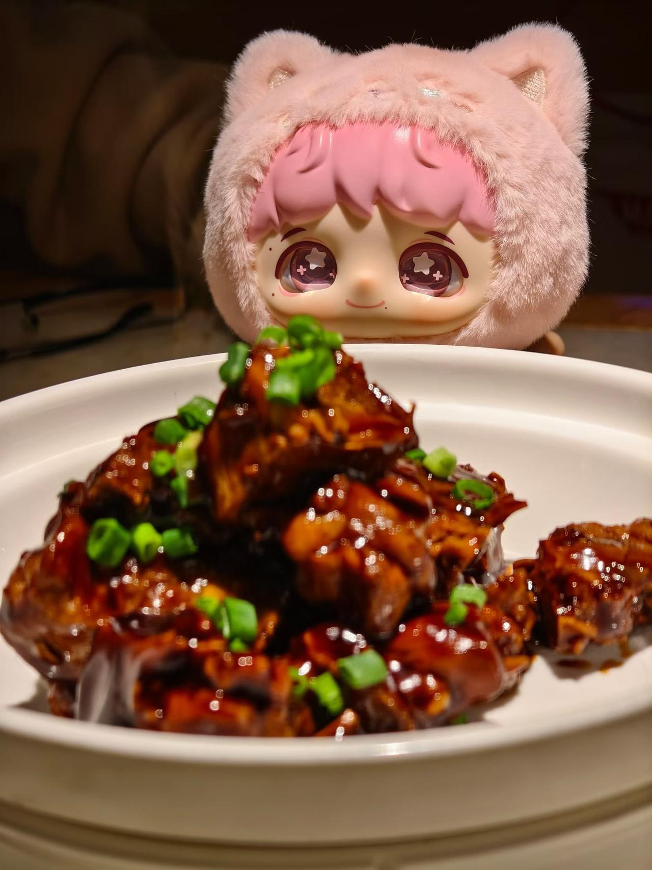 今天中午就随便对付一口。你看这菜,酱汁稠稠的裹满了肉,老远就闻着香,撒点葱花绝绝子!还有我这小玩偶,粉嫩嫩的陪着我吃饭,瞬间觉得这顿简单的饭都有滋有味了。害,有时候就想这么随便吃点,不用费脑子想吃啥,舒服!
