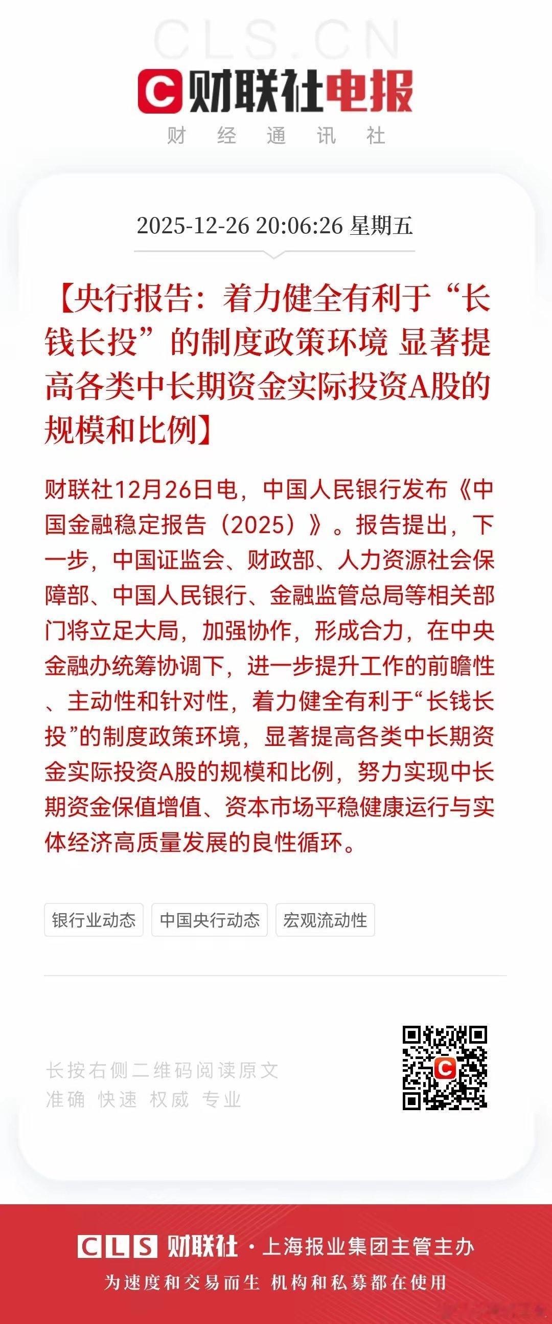 好消息,周末股市利好消息来了!利好消息如下:利好消息一:中国金融稳定报告出炉,继续提高耐心资本长期投资比例,大盘回落至3800点附近,国家队果断出手,随后大盘走出8连阳小牛市步伐!可以A股中长期绝对是值得看好的。利好消息二:美股三大股指微跌,中概股逆势大涨0.7%,相当亮眼,富时A50指数和香港恒生指数期货均微红状态。期货市场也普遍上涨。那么周一A股继续维稳碎步上行概率非常大,九连阳可期待,九阳神功再现股市江湖!市场跨年主线非常清晰,商业航天二波行情再起。有色锂矿,机器人作为辅线助攻。市场热点保持热度,人气就会被激发,周五A股成交量再次放大,成交金额重回2万亿,有水就有鱼。祝大家投资愉快,点赞者发财啊