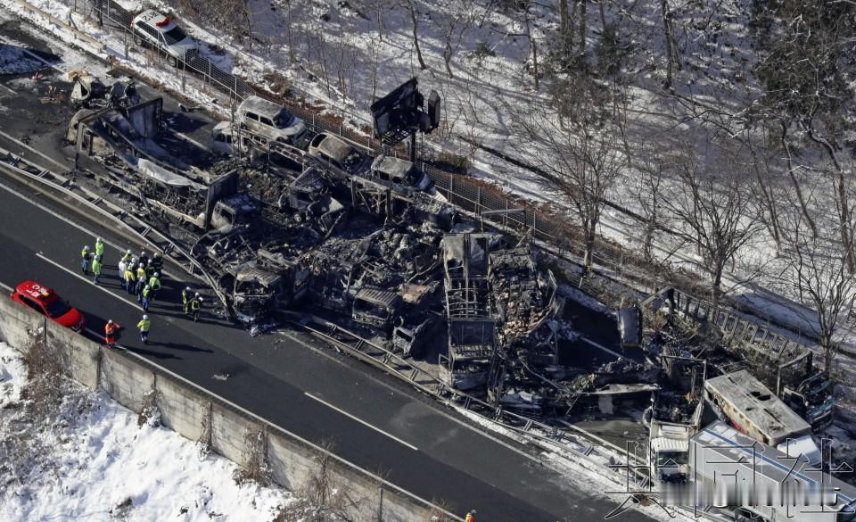 【日本共同社12月27日报道】:26日晚上7点半左右,在日本群马县水上町境内的关越高速公路下行线发生的多车连环事故,涉及卡车和乘用车等50多辆车。据该县警方和消防部门消息,已有2人死亡、5人重伤、21人轻伤。事故引发火灾,10多辆车起火燃烧,约7个半小时后被扑灭。事发时正下雪,警方认为可能因路面结冰导致打滑,正在调查原因。 事故地点位于高速公路的水上出入口(IC)附近,为双向四车道。最初是一辆因单车事故停下的卡车,被另一辆卡车撞上。试图回避的车辆在约300米距离内接连发生事故。事发时因降雪实施了时速50公里的限速。