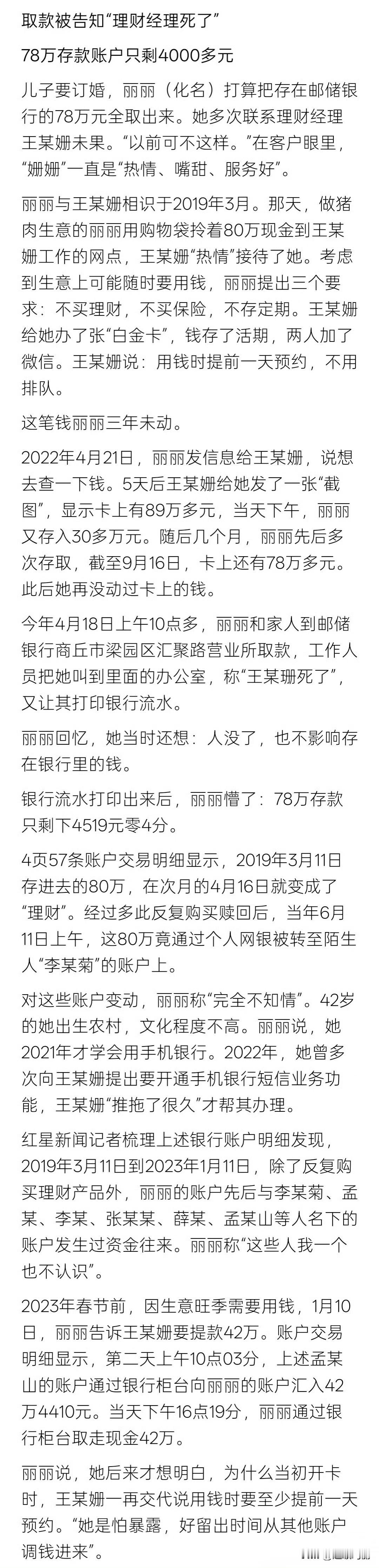 这银行监管也太松了吧!她还挺精明的,选择的都是不会用手机app的老人,有点不明白的就是 为什么她操作账户不会触发短信提醒