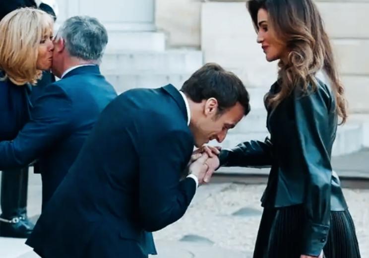 马克龙和妻子布丽吉特两人的姿势是不是挺一致啊? 马克龙和布丽吉特两人都非常热情啊! 马克龙和布丽吉特两人谁的姿势更优美一些呢?