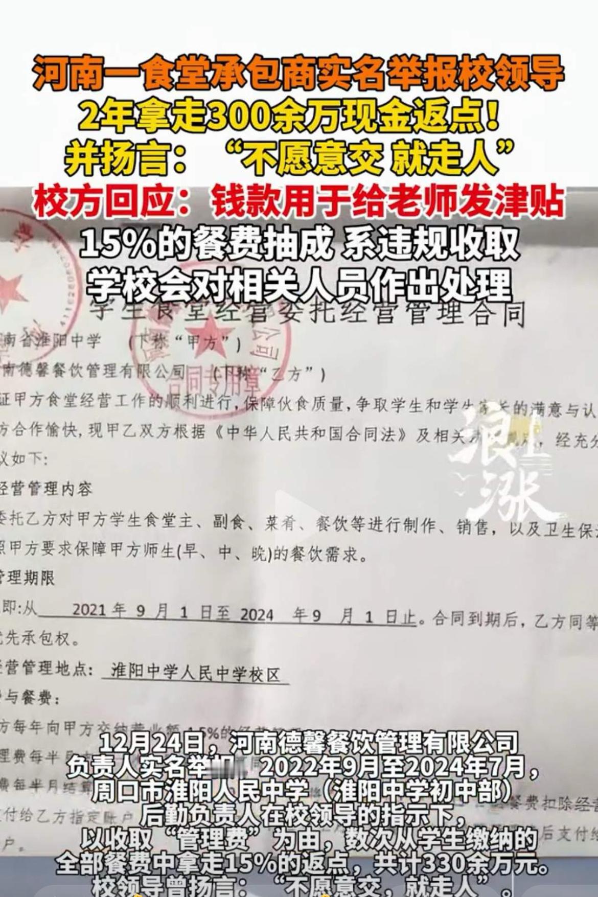 河南女子承包食堂遭“吃霸王餐”?合同变脸,管理费“突击”涨到15%! ——食堂“霸王条款”背后的那些事儿 你说,承包个学校食堂,能遇到啥“惊喜”呢? 河南一位勇敢的女子,原本是抱着“自己当老板,吃香喝辣”的梦想,承包了一所学校的食堂,供3000多名学生吃饭。结果,没想到刚开始还算顺利,没想到合同期内,竟然变成了“霸王条款”大戏。 事情是这样的:这位女士每年支付的餐费,按照每个学生每天20元算,收入还算可以。更有意思的是,她和学校签的合同里,规定她要向学校支付管理费——只要4.5%的餐费,听起来还算合理吧?但谁知道,学校领导突然“变脸”了,直接把管理费涨到了15%!一夜之间,她的成本就“蹭蹭蹭”飙升了三倍。 更令人气愤的是,学校领导还威胁说:“要是不愿意交,就走人!”这话一出口,简直就是“霸王条款”现场版。面对如此强硬的态度,这位女子虽然心里不是滋味,但也只能忍气吞声。毕竟,前期投入那么大,设备、原料、员工工资……一切都得继续维持。 这事儿反映出啥?其实很典型的“合同陷阱”问题:一开始签合同时,双方都觉得公平合理,但时间一长,学校领导突然翻脸不认账,把管理费“偷偷”调高,像是吃霸王餐一样。更别说,合同里还没有明确限制涨价的条款,女子只能被动接受。 这背后,折射出一些社会问题:承包方的权益难以保障,合同的“霸王条款”屡见不鲜。更重要的是,像这样的事件,提醒我们在签合同前一定要多留心,最好有专业人士帮忙把关,避免被“吃掉”一大块。 而对于这位河南女子来说,未来路还长。希望她能通过法律途径维护自己的权益,也希望相关部门能加强监管,让类似的“霸王条款”不再泛滥。 总之,承包食堂不只是吃吃喝喝的事,更是一场关于权益和法律的较量。希望每个像她一样的“食堂老板”都能吃得安心、走得顺畅! 霸王餐条款