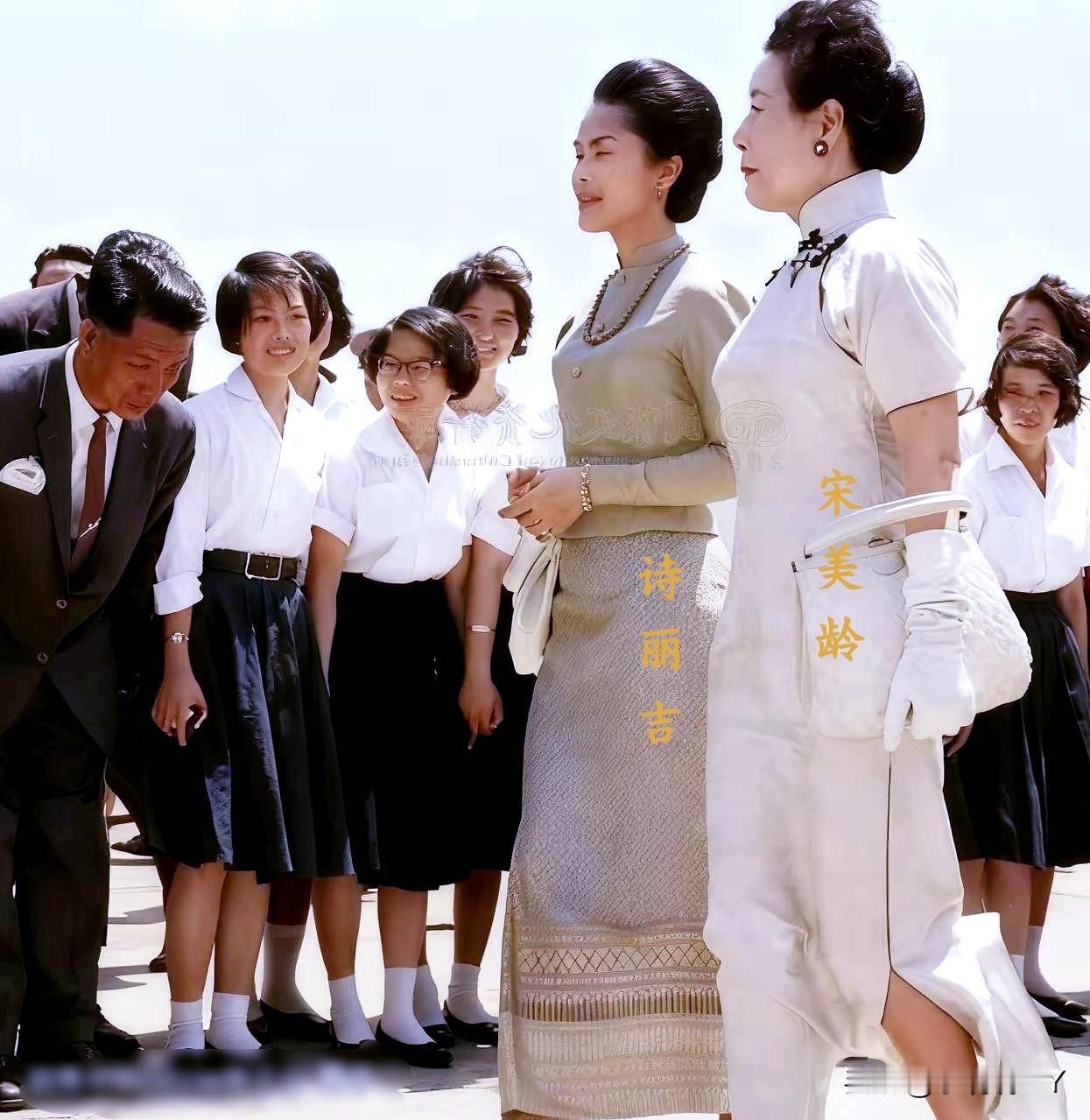 一九六三年,台湾,在机场迎接泰国王后诗丽吉的宋美龄,时年六十六岁。