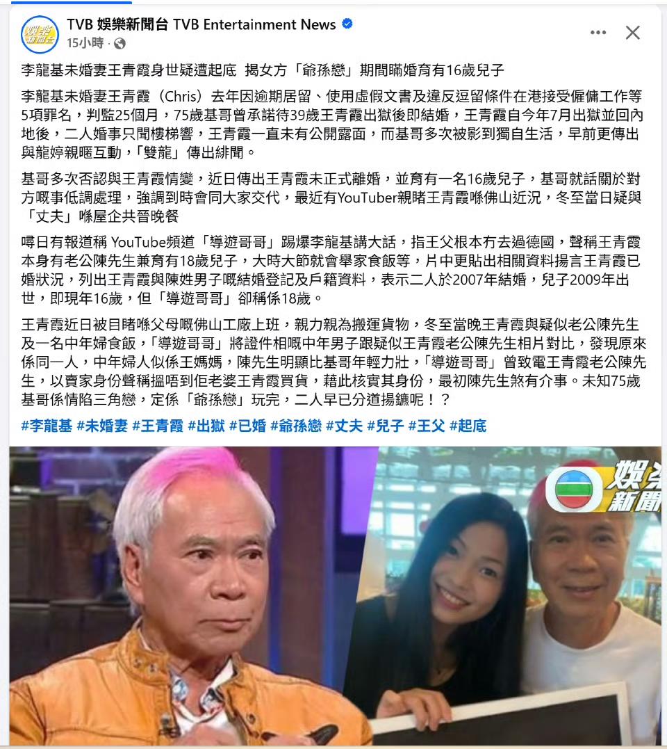 李龙基未婚妻王青霞身世疑遭起底,揭女方「爷孙恋」期间瞒婚育有16岁儿子