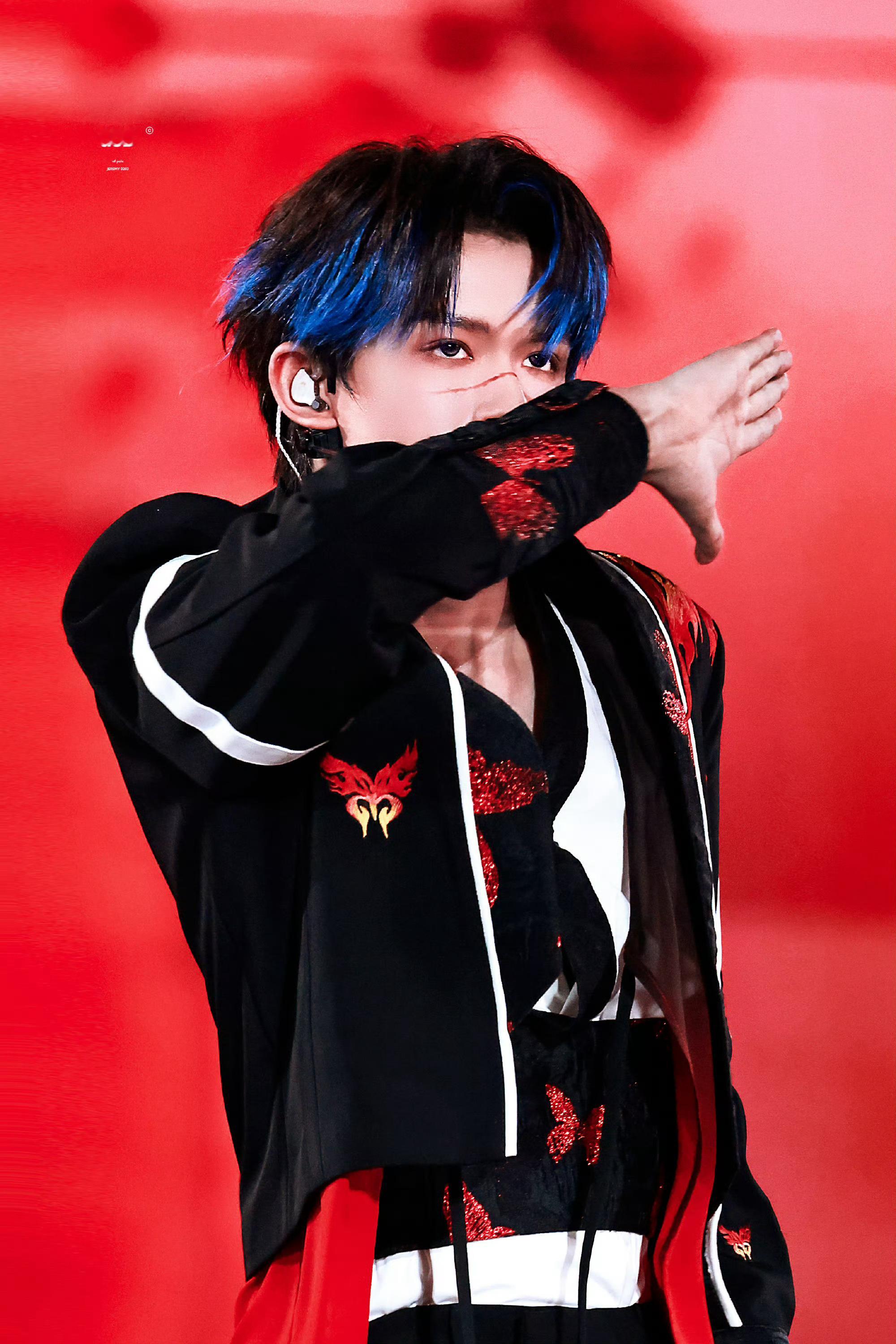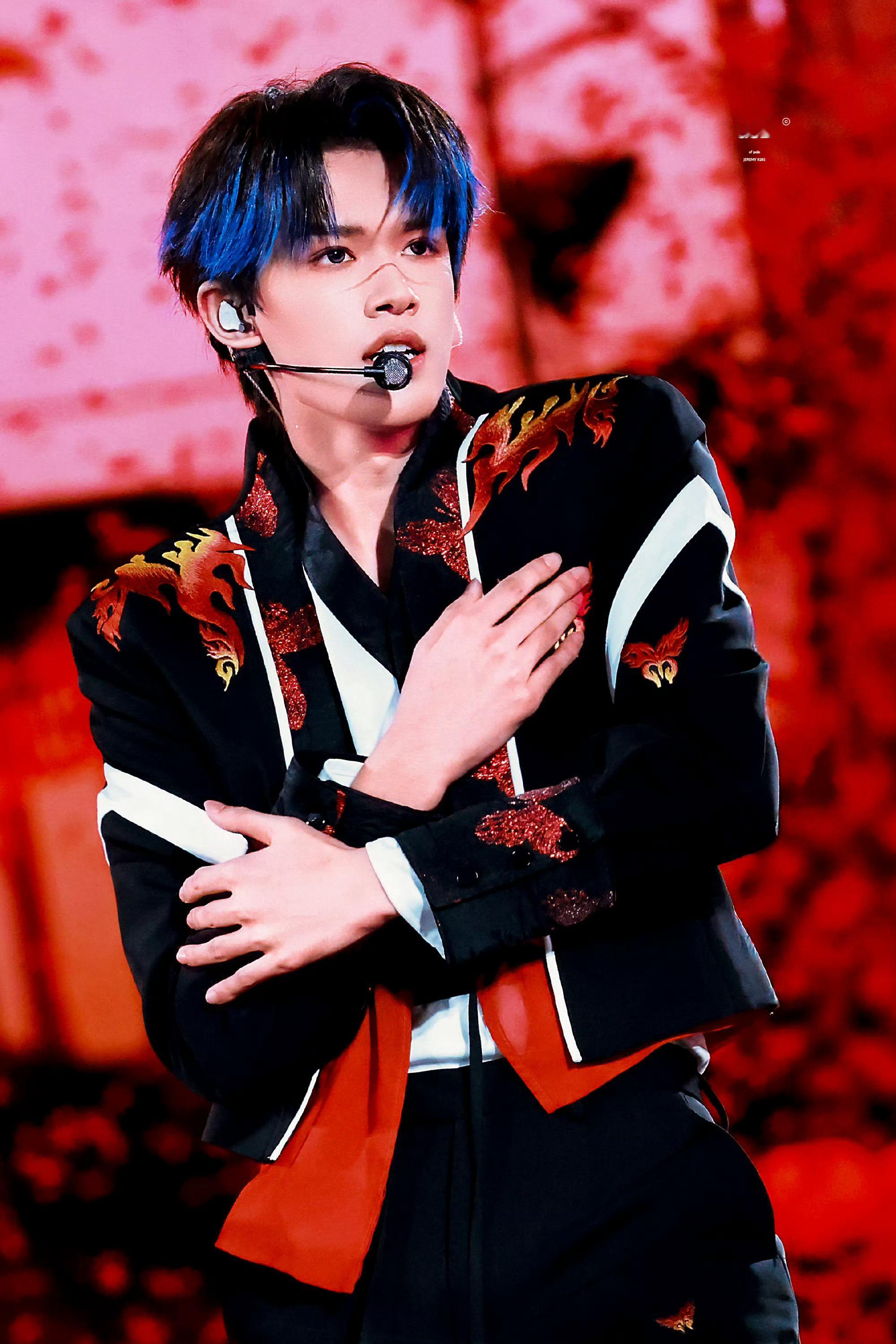 张极蓝发挑染张极既酷帅又带着点不羁,随便一个眼神,就能把人迷得晕头转向,这颜值和