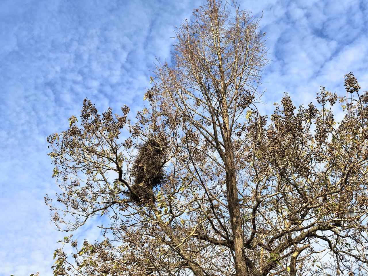 神奇!五层楼的复式雀巢见过吗? 这是浙江湖州德清乡村的一处喜鹊的巢,与一般雀巢不同竟然是复试结构——初步观察一下竟然有五层。 喜鹊在中国文化中是吉祥的象征,有时候我们会叫它“报喜鸟”,深受人们喜爱! 我们如此喜欢喜鹊的一个原因是它全年都十分活跃,是一种留鸟,它们和候鸟不同的是不会随着四季变化而调整栖息地。 喜鹊窝有三层组成,最外层有枯树枝搭建用于固定,并带有杂草和泥土,中间层有细树条搭建,糊上泥土遮风挡雨,内垫是由麻、纤维、哺乳动物的毛发,鸟类的羽毛等等组成,保暖舒适。 一般的鹊巢,都会符合这些建筑参数:距地高7-15米,巢外径48-85厘米,内径18-35厘米,高44-60厘米。 椭圆形大门11厘米×10-15厘米开在侧下方。 少部分“工匠”喜鹊,会在多年连续翻新和扩建自己的窝,使其成为真正的复式建筑。 这一处五层结构的复式雀巢确实是我第一次见到!