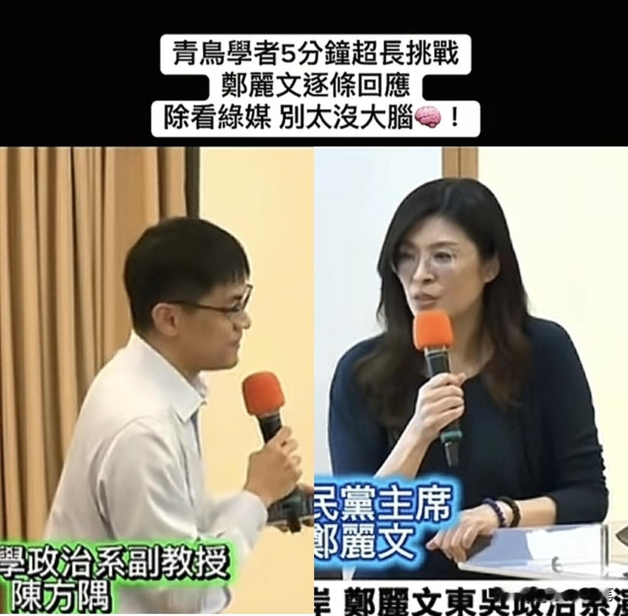 郑丽文在东吴大学与副教授陈方隅激辩还没完,又上节目再度反驳陈方隅。 郑丽文的风格就是够胆量,对于一些尖锐问题敢直球对决。当天在东吴大学演讲,那位副教授陈方隅故意刁难,心存恶意,摆明就不是一般正常的师生,如果是正常的师生,好歹也会对郑丽文给予基本的尊重,毕竟郑丽文也是一党的主席,而且论年纪和学识都应该值得尊敬。不同意见可以讨论,但不应该在现场长时间恶意提问,但这位副教授陈方隅很明显是带着任务而来,想当场让郑丽文出糗,但是他找错对象了,郑丽文最厉害的本事之一就是思维敏捷,口才了得,平时不管是辩论还是街头集会演讲,郑丽文都信手拈来,更何况在面对完全没有道理的民进党傀儡陈方隅,郑丽文更是轻松应对。