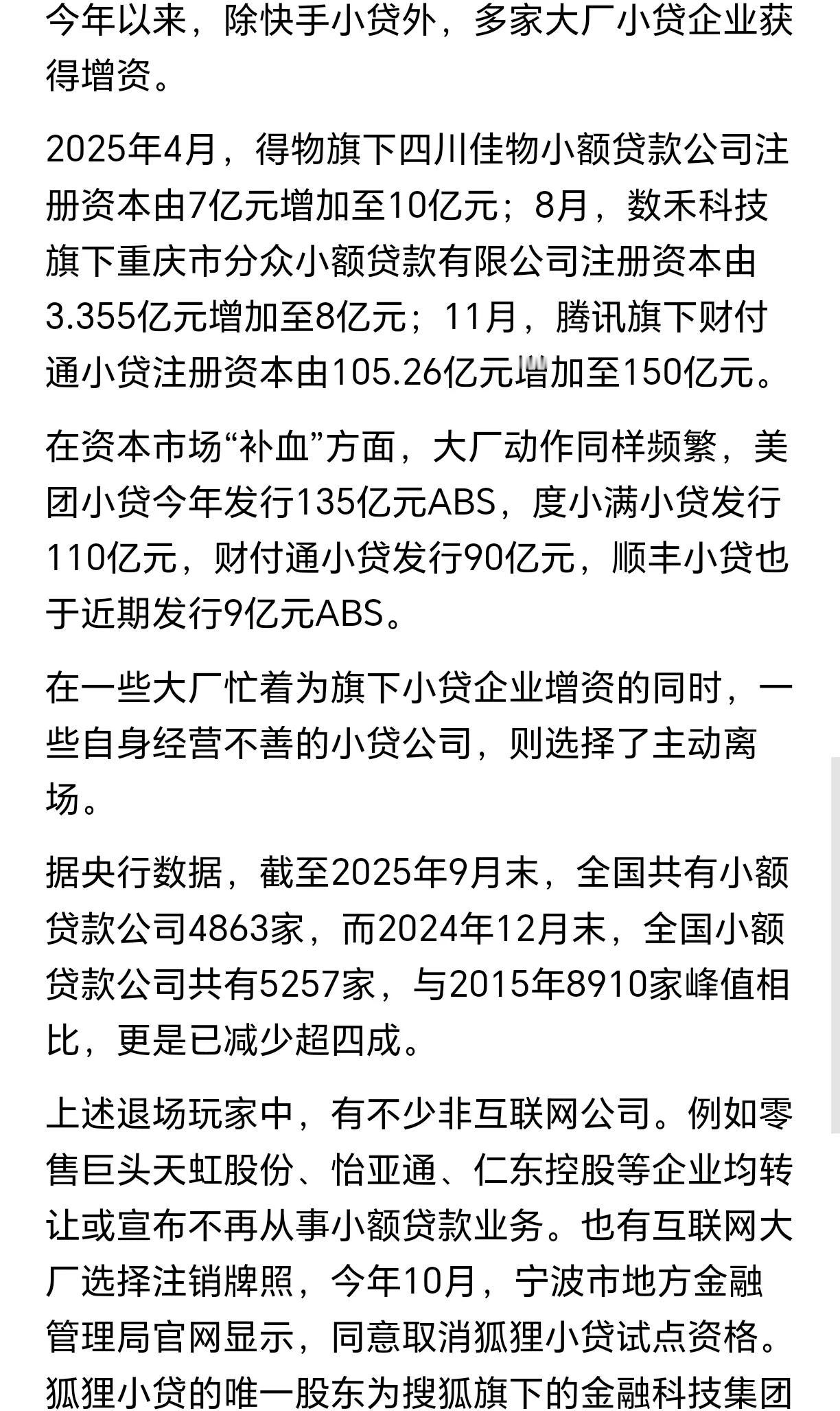国内互联网公司的发展尽头是网贷。 不只是快手,其他互联网大厂手握庞大的现金流和资金,不是去搞风险较大的科研开发,而是跑去放贷想要躺赢稳赚也不是最近才有的风气。 今年来国内加大了对各种互联网贷款平台的清退和限制,许多不合法合规操作的小网贷公司被清退,但更多实力雄厚、手持牌照的互联网公司反而趁机发展壮大、占领空出的市场。 这是资本逐利的必然性,未来网贷市场的发展壮大是不可避免的。 可世界上没有稳赚不赔的躺赢生意,尤其是做这类生意的人越来越多的时候。参考日本的高利贷发展历史,国内等到泡沫破裂、损失惨重、造成极大社会影响时,那时才能有决心彻底整治规范网络贷款。 网贷 互联网 网贷公司