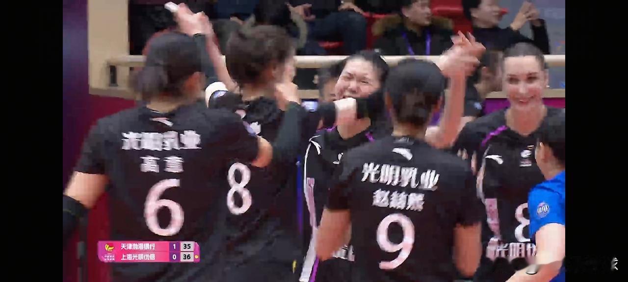 上海不败金身告破! 恭喜天津3:1上海,绝对意料之外。尤其第二局打到了惊人的比分35:37! 原来以为上海光明优倍独一档,现在有点乱战了! 上海胜江苏,江苏胜天津,天津又胜上海,球风你克我,我克你!似乎还有无限遐想! 不得不说天津女排老将发挥出色,刘美君稳定的一传,娜塔莉娅稳定输出,球迷说刘鑫打成了谢拉! 排超这两轮,天津都给了不一样的惊喜。 一场新人主打,和江苏5局大战; 一场老将为主,3:1拿下上海。 范赖克好像来到排超后,发球一直失误挺多,且频频被拦。高光的场次不太多!似乎她的扣球适合快速传球体系。 高意的背飞频频被防起,许晓婷的传球波动起伏大…… 上海不再是一家独大,谁是今年排超冠军真不好说! 另外江苏3:1北京,河南3:2辽宁!
