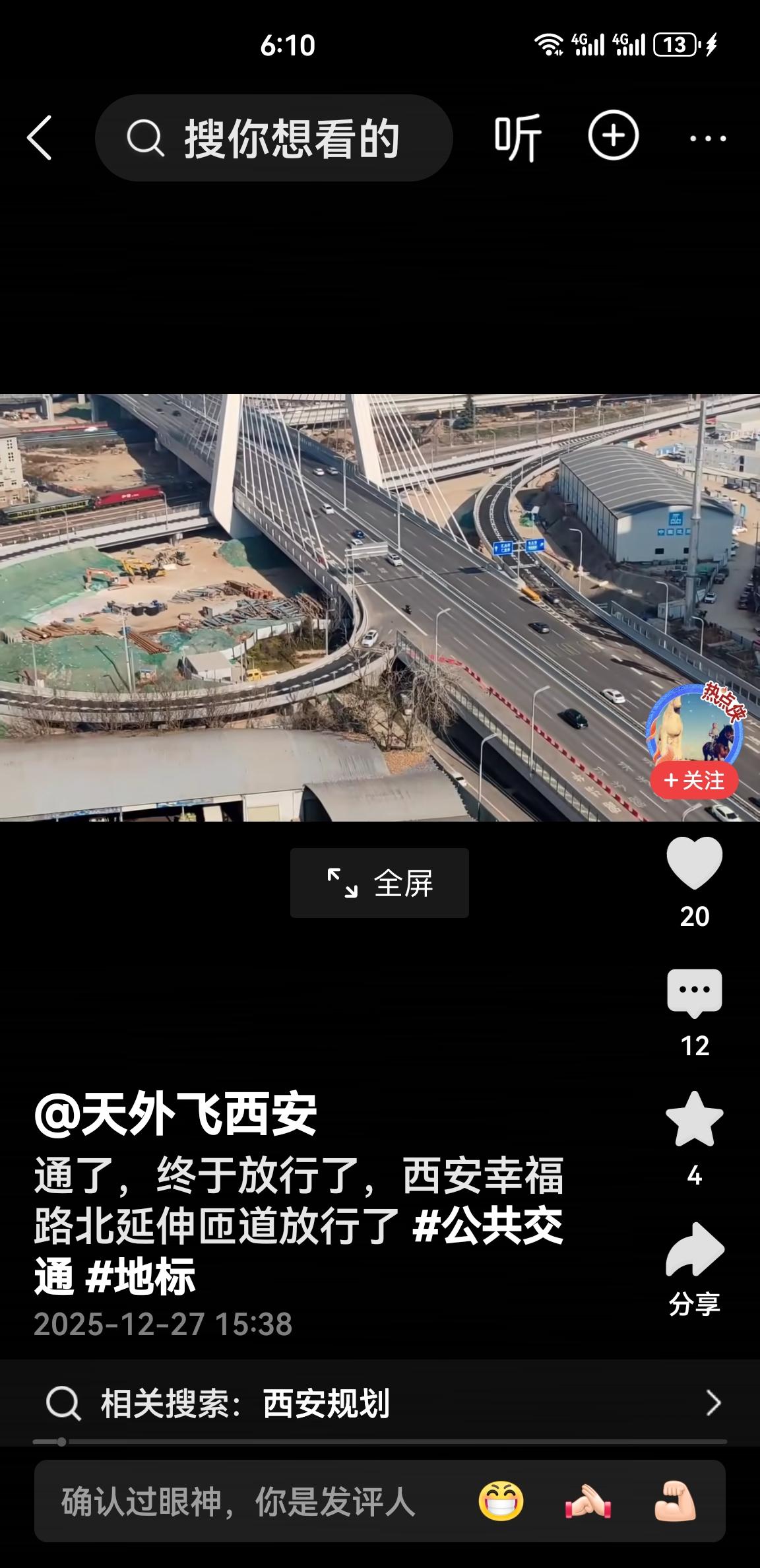 西安幸福路北延伸工程与东快速干道立交匝道开通运行,谢谢参与建设的单位和劳动者!感谢你们,让西安东部出行更加方便快捷!