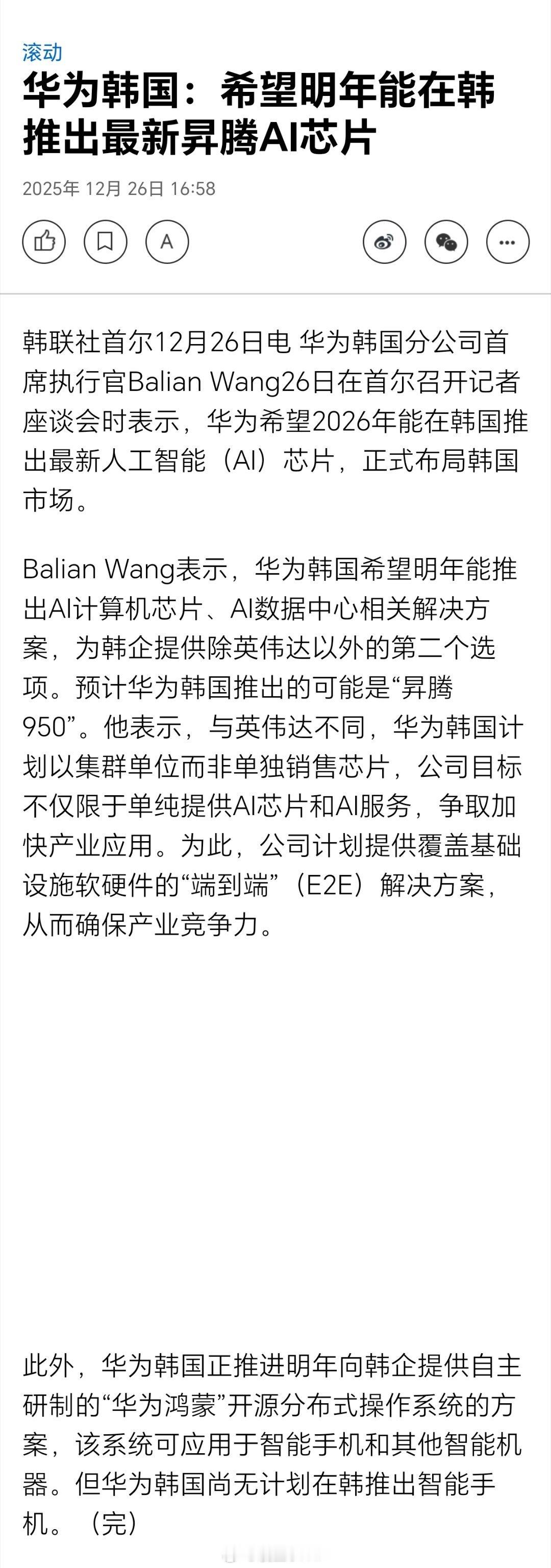 华为韩国:希望明年能在韩推出最新昇腾AI芯片
