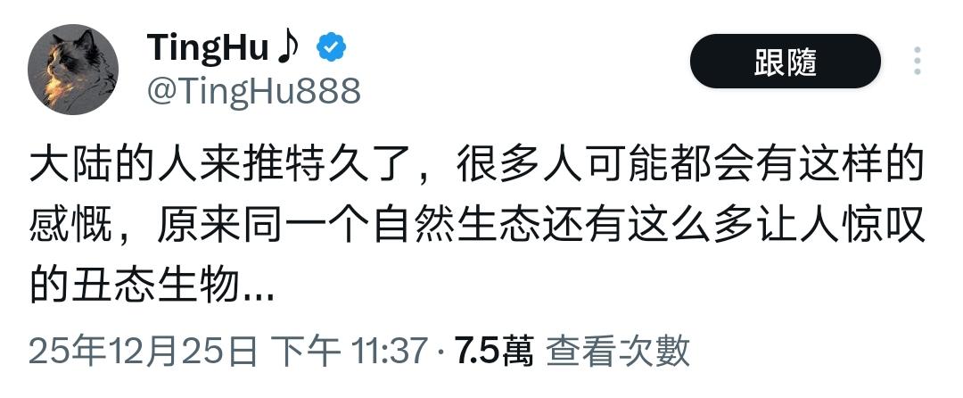 这个观察绝对正确! 在推在呆久了,很难没有这样的感悟: 生物的多样性在人这个种群中的差别之显著,超出你的想象。人与人的区别之大,甚至超出人与汪星生物的区别! 所以,在跟人类的其他族群交流(往)时,千万别以己度人,误判形势,绝对是我们的错! Source: X