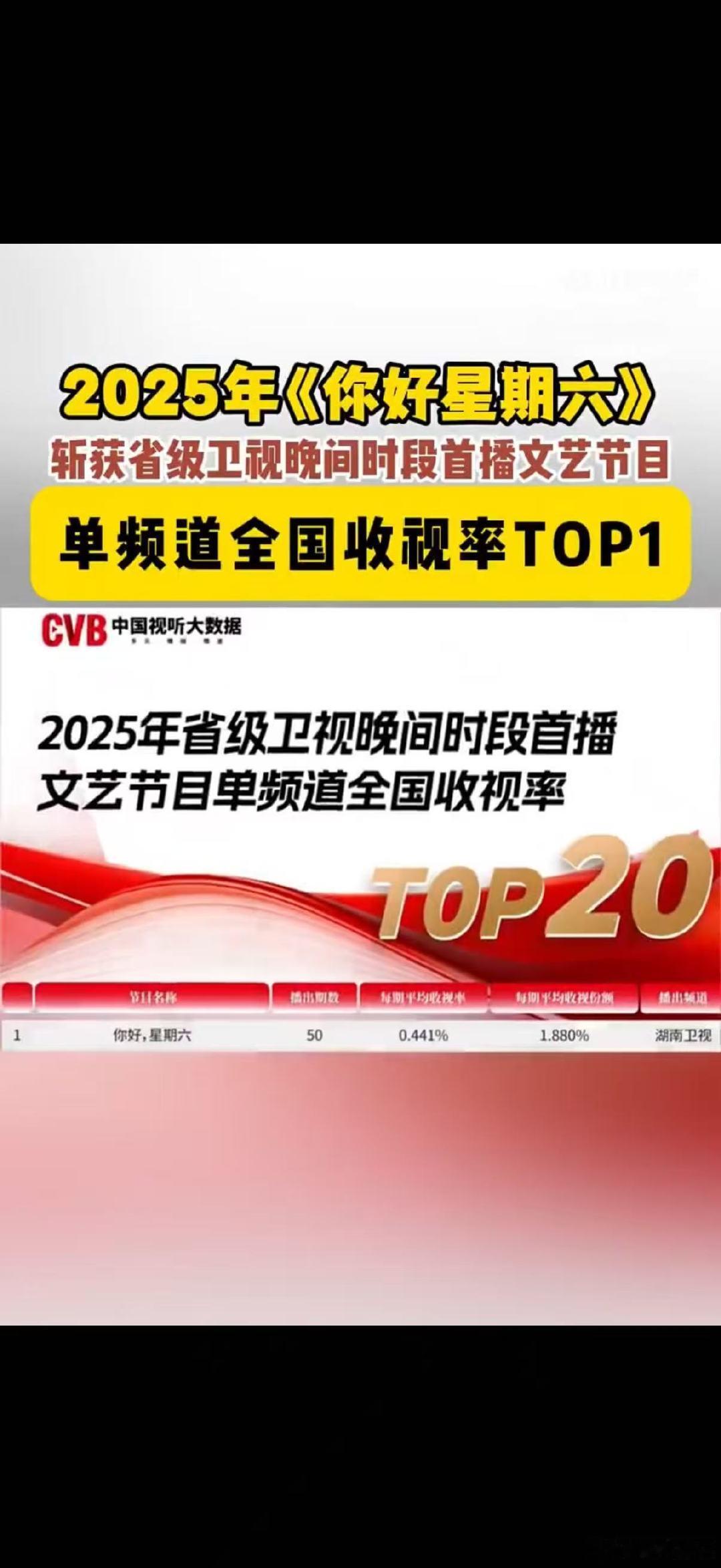 你好星期六年度收视第一hi6收视率年度第一你好星期六恭喜《你好星期六》锁定年度收视第一,综艺界顶流担当,快乐持续输出,新一季等你!
