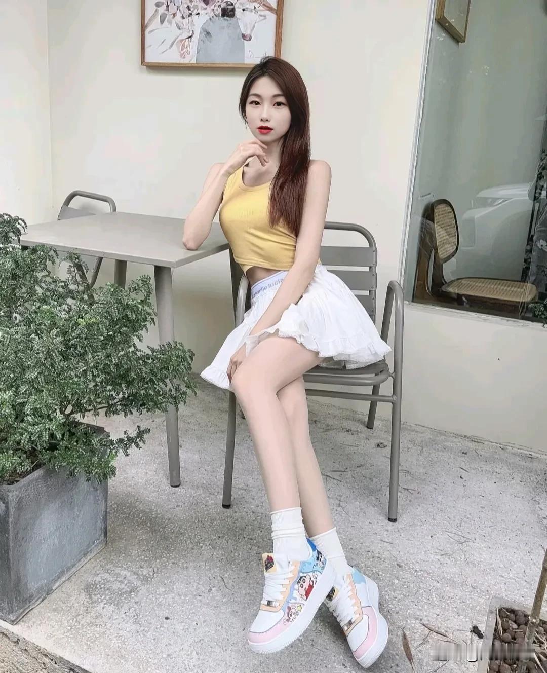 清新穿搭指南:黄色背心+白色短裙,清新又时尚!漂亮小姐姐