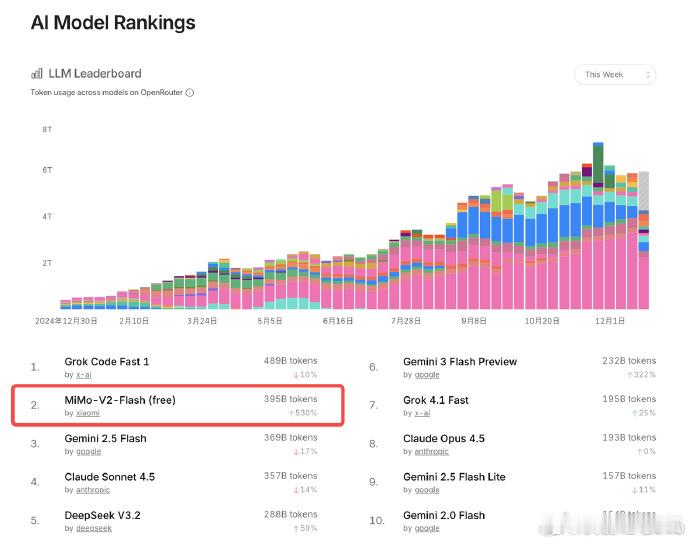 【MiMo 大模型实力强劲震惊海外开发者 】 国产大模型这波在海外直接杀疯!OpenRouter 最新周榜里,小米 MiMo-V2-Flash API 调用量飙到第二,还是国产大模型第一;Artificial Analysis 数据里,它更是冲进全球开源大模型第二。海外开发者都在夸:AI 分析碾过同价位对手,面向 Agent 时代的实用性不搞虚的,甚至被当成 Gemini3 Flash 平替 —— 关键这模型不仅效果能打,还免费又便宜!之前总说国产大模型出海难,现在小米这进步是真肉眼可见,全球关注都不输同期的 Gemini3 Flash,这波确实有点东西!海外开发者惊讶小米MiMo新模型表现