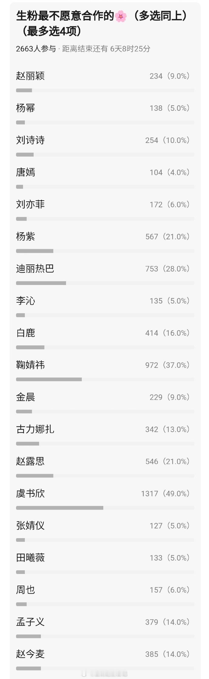 db投票🌸花粉最不想合作的生🥜前五:成毅,刘宇宁,檀健次,肖战,王一博🥜生粉最不想合作的花🌸前五:虞书欣,鞠婧祎,迪丽热巴,杨紫,赵露思