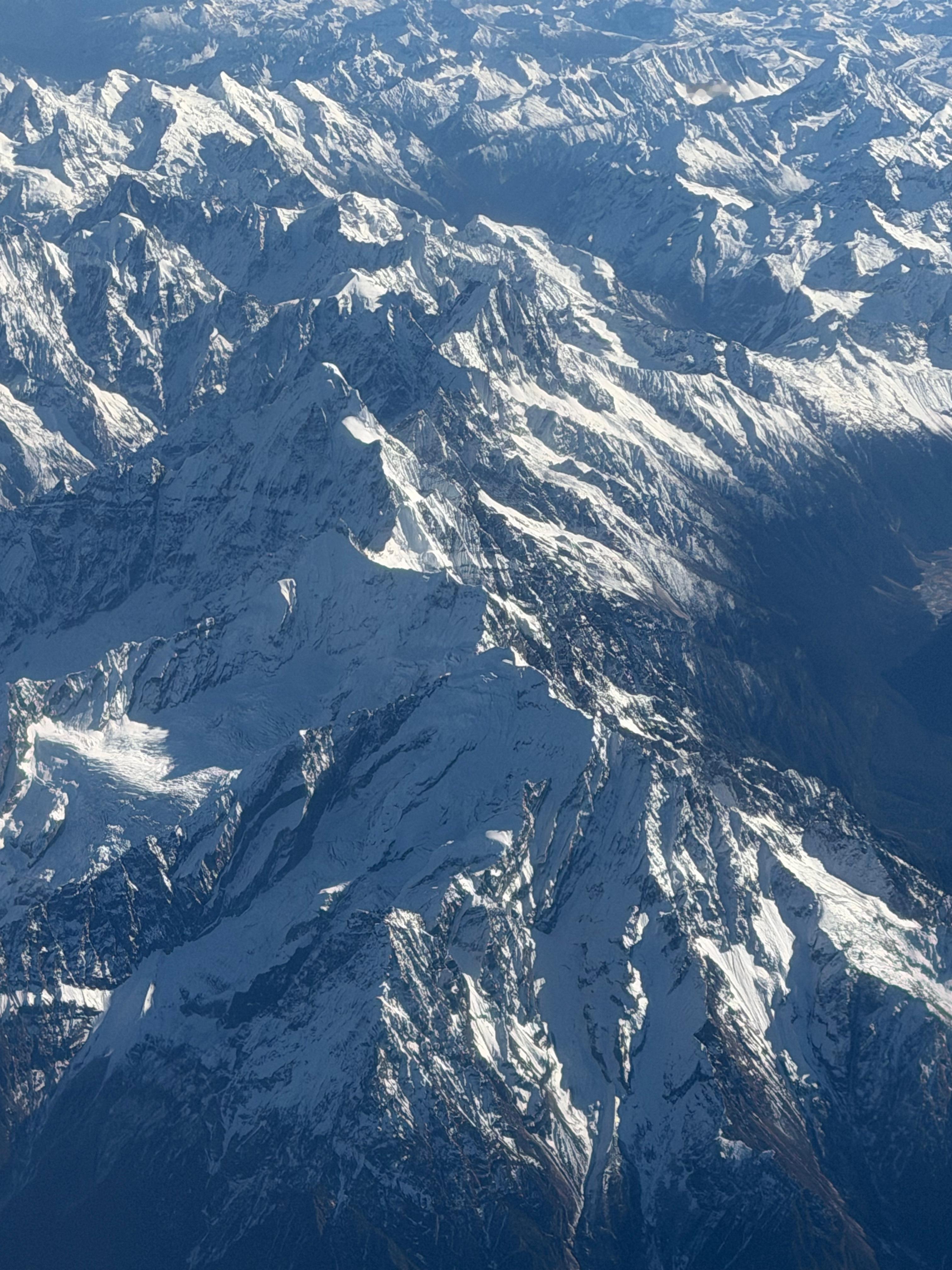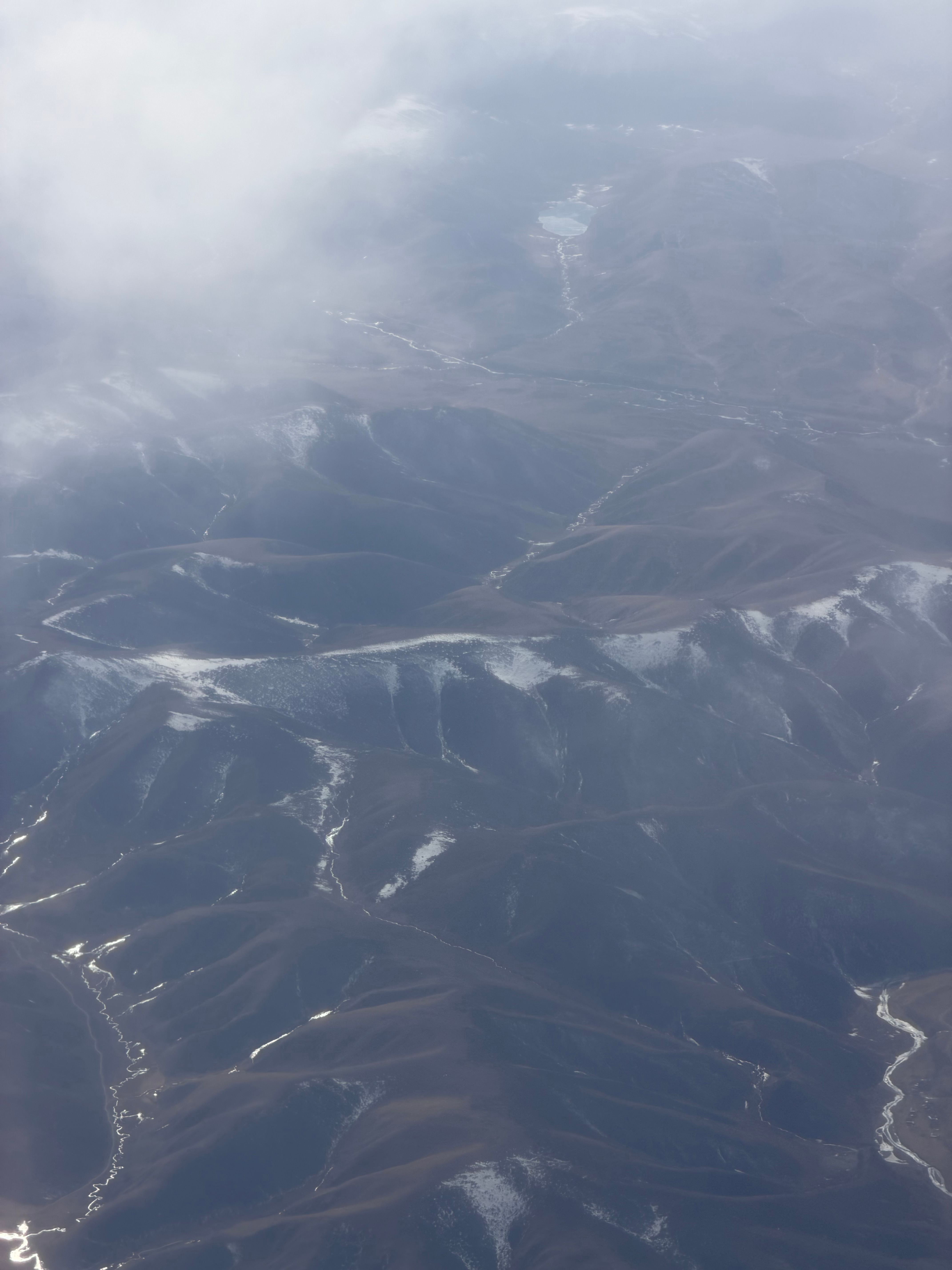从重庆起飞以后,大概20分钟,就告别下雪、浓雾,全是白皑皑的雪山,大家记得,内地