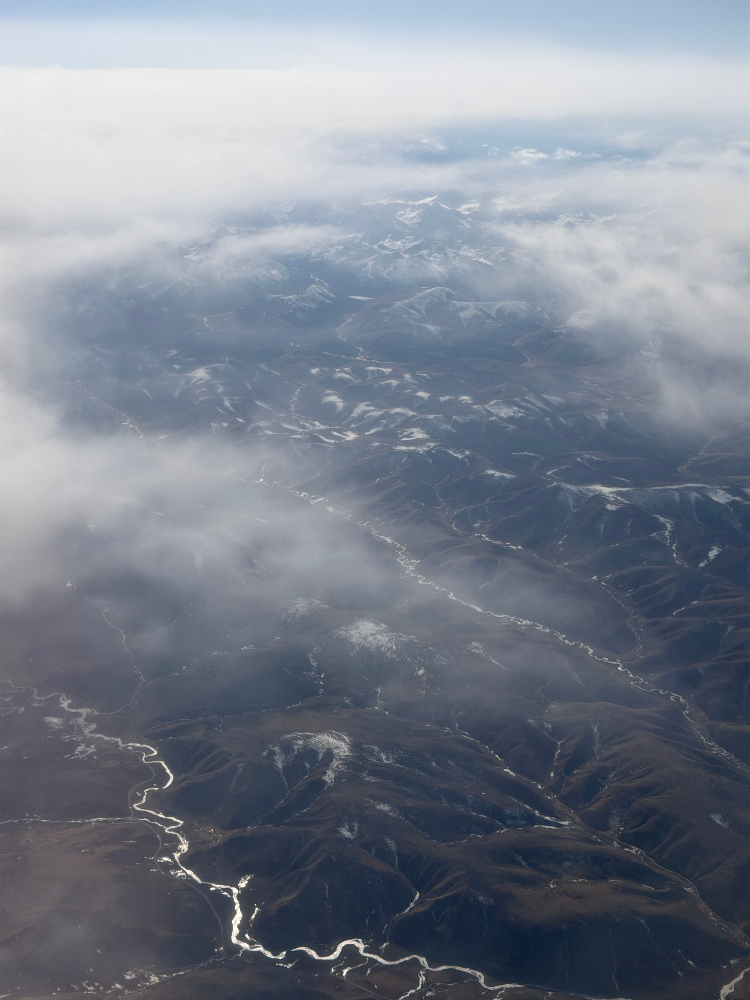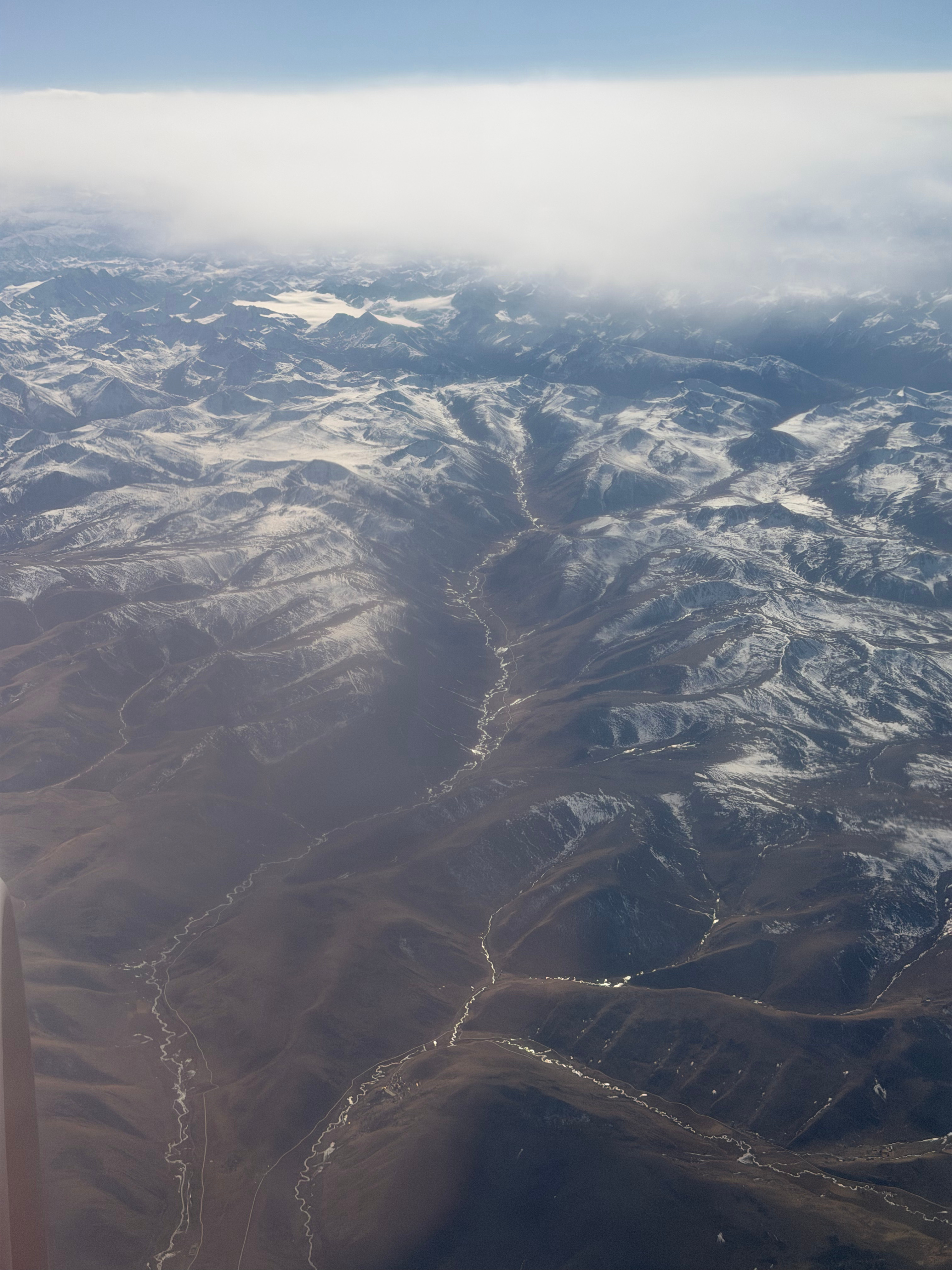 从重庆起飞以后,大概20分钟,就告别下雪、浓雾,全是白皑皑的雪山,大家记得,内地任何地方飞拉萨,一定选左边靠窗位置 林芝