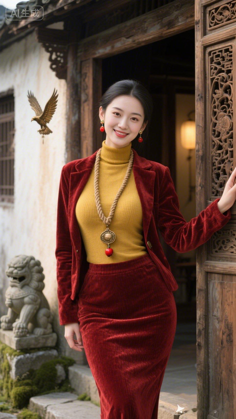 复古中国风穿搭,红衣黄衫,韵味十足!