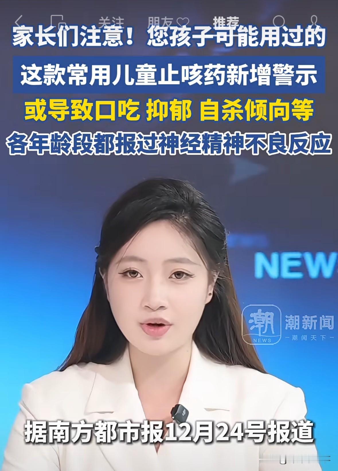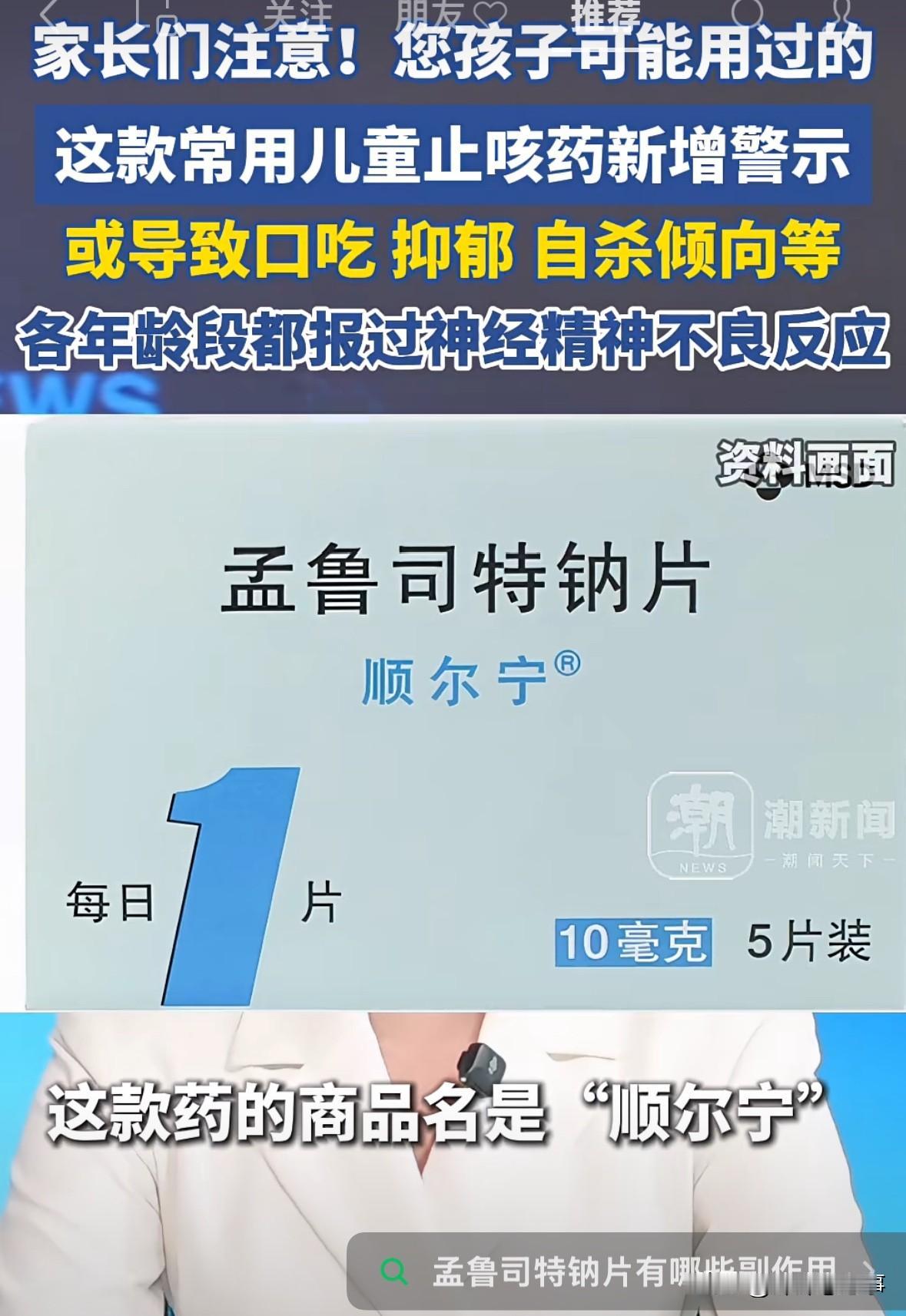 家长们注意了⚠️ 药盒上印着“儿童专用”,可能却藏着“口吃、抑郁、自杀倾向”这些字眼。孩子咳嗽几声,你慌忙喂下的药片,会不会正悄悄伤害他的神经? 孟鲁司特纳——这个很多家长熟悉的药名,终于等来了警示。国家药监局正式修订说明书,明确提醒:各年龄段都可能出现神经精神不良反应。有孩子吃了后开始口吃,有孩子情绪低落,甚至出现自杀倾向…… “就一条小命,各行各业都在惦记着。” 这句评论看得人脊背发凉。 当父母的,哪个不是小心翼翼护着孩子长大?怕他摔着、怕他饿着,却从没想过,有一天要提防他吃进嘴里的药。 新闻下面,有家长留言说自家孩子就是受害者。字里行间都是后悔和心痛。原来有些伤害,是以“治病”的名义来的。 孩子哭了,我们给糖;孩子咳嗽,我们给药。可如果连药都不能相信,我们还能相信什么? 这不是制造焦虑,是提醒每个父母:喂药前,多看一眼说明书;孩子出现异常,多问一句为什么。 孩子的命只有一条,我们输不起。