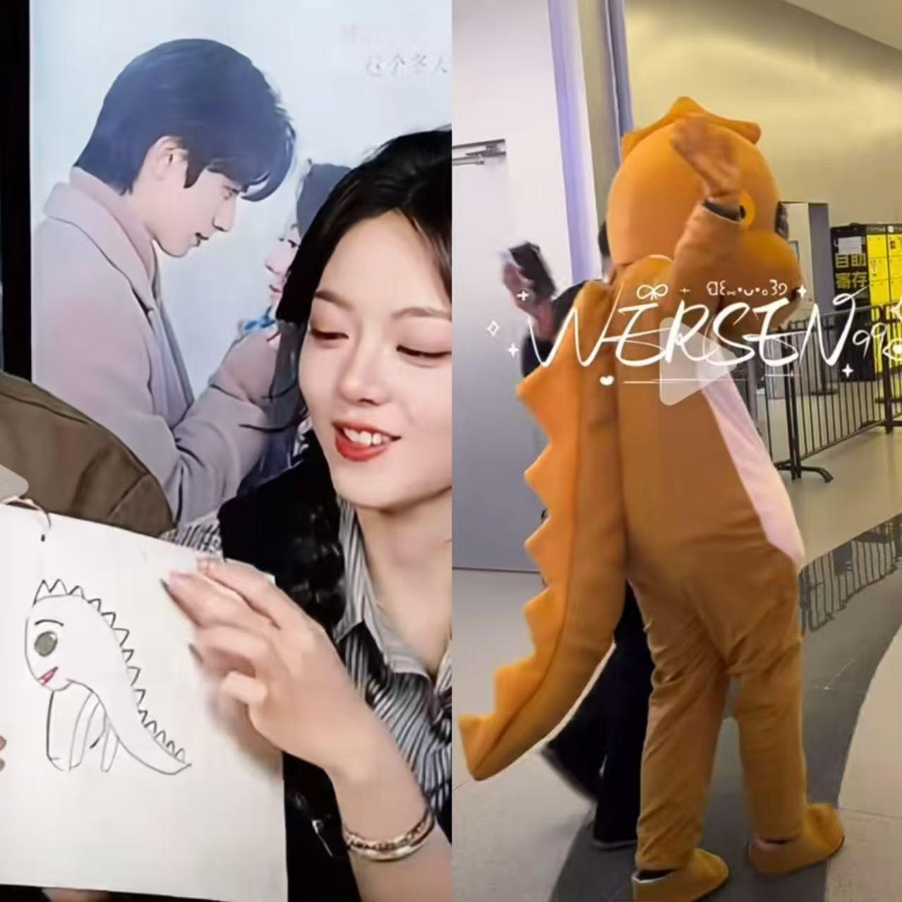 燕麦威化宋威龙今天见面会扮了恐龙玩偶,这个造型不就是前几天麦麦画的恐龙嘛!听我