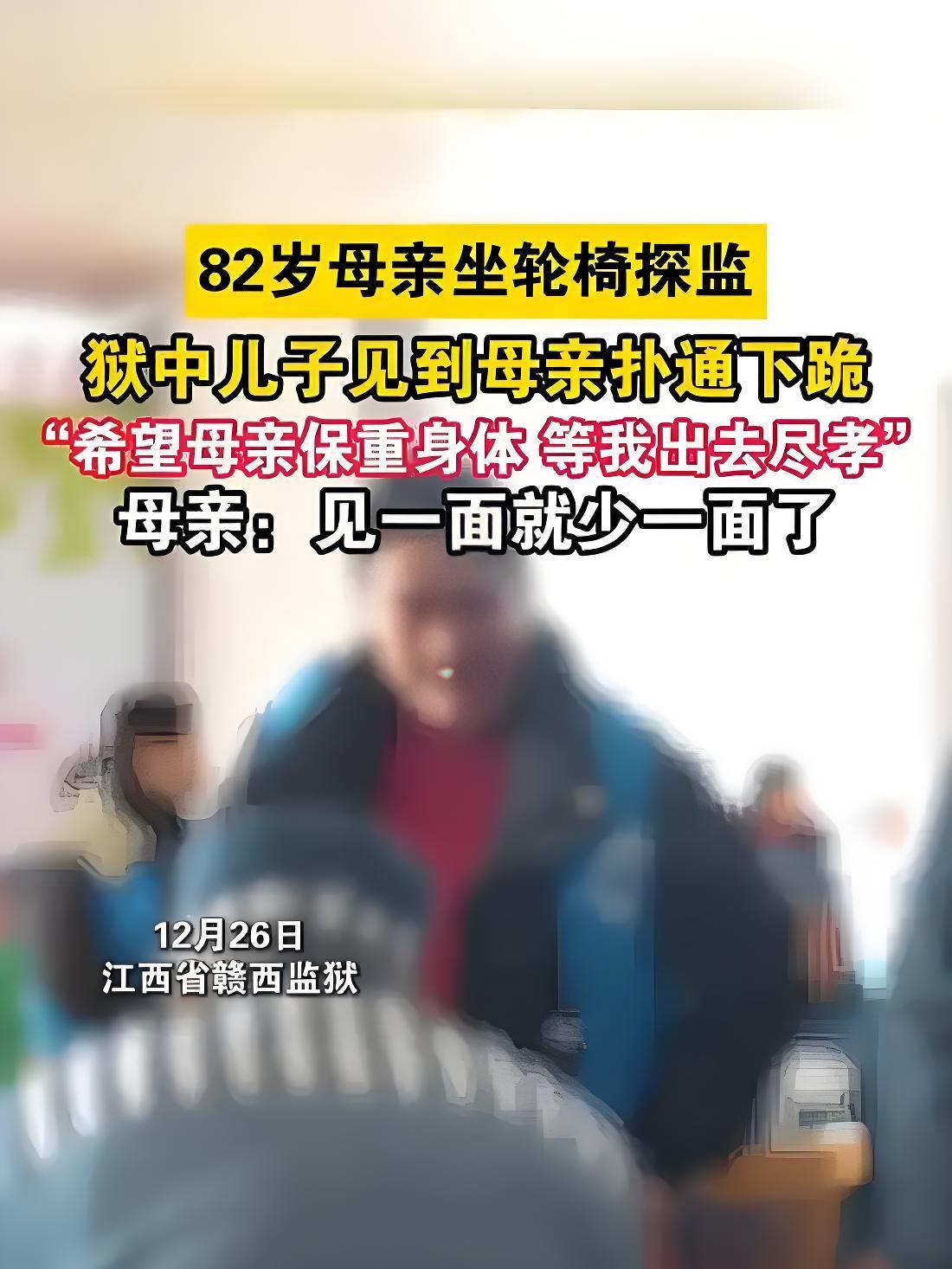 破防!82岁母亲坐轮椅千里探监,狱中儿子一跪哭碎全网:妈,我错了! 见过最戳心的重逢,莫过于这场隔着玻璃的母子相见 82岁老人腿脚不便、身患慢性病,为见服刑的儿子一面,硬是坐十几个小时慢车跨越千里,全程蜷缩在轮椅上,头发白得像雪却特意换上干净衣服。当会见室门打开,儿子穿着囚服看到母亲颤巍巍的模样,“扑通”一声跪倒在地,眼泪止不住地流,嘴里反复念叨“妈,我对不起你”。 老人隔着冰凉的玻璃,想摸儿子的脸却碰不到,只能哽咽着叮嘱:“娃啊,好好改造,妈等你回家”。原来儿子入狱后或隐瞒实情、或消极改造,直到看见母亲千里奔波的憔悴模样,才彻底幡然醒悟——自己一时糊涂的过错,竟让年迈母亲跟着遭罪。 这场会面多亏了监狱特事特办开通绿色通道,而这一跪不仅是愧疚,更是浪子回头的决心。网友直呼:“家人的牵挂,才是改错的最大底气”,也警醒所有人:法律红线碰不得,别让一时冲动,辜负了最爱你的人!