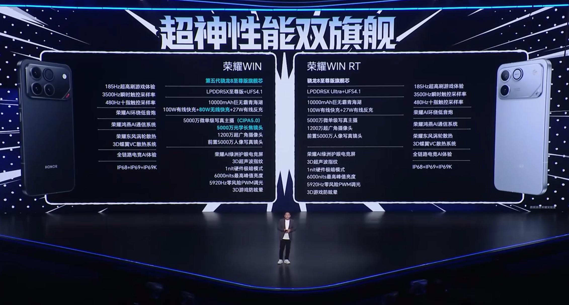 “充电宝”级别的手机见过吗?荣耀WIN系列真的不讲武德,不仅是一万毫安时电池往里装,还是骁龙8至尊版,配置到这份上了,其他性能相关的东西也不用说了,都是拉满的,屏幕更是185Hz都来了,光纸面数据看,性能和续航目前基本没什么对手。如果你是究极性能党全都要,WIN是无脑上的,如果预算有限,没有无线充电和长焦的WIN RT要便宜不少,但性能同样牛逼,性价比爆棚。