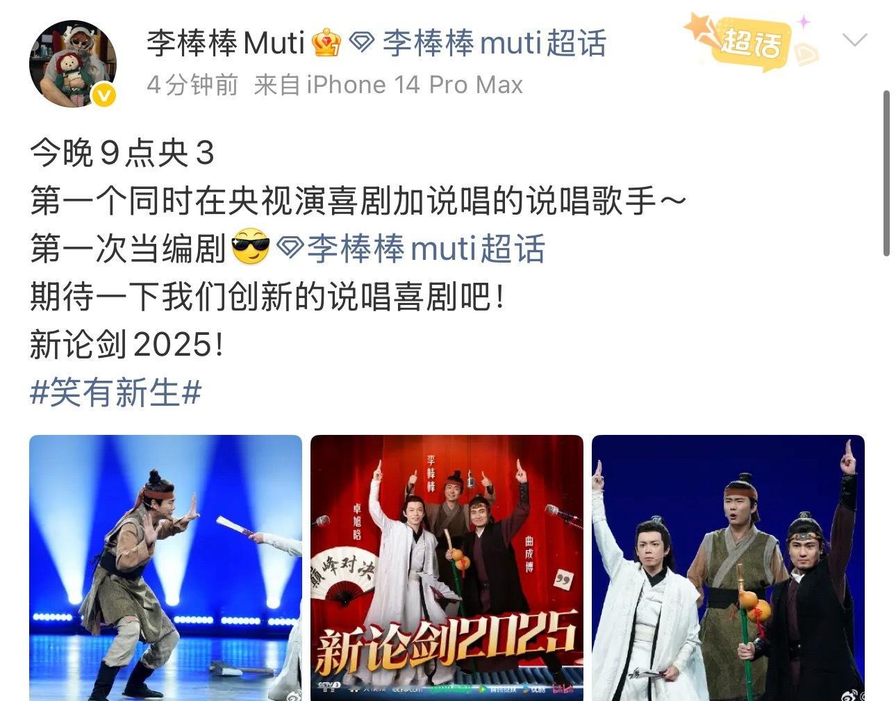 李棒棒登上CCTV3🔥将在央视表演说唱喜剧!!笑有新生
