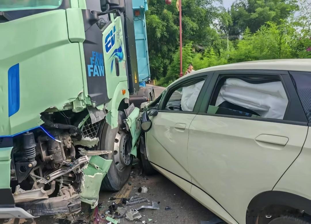 我说比亚迪海豚你想干嘛,你不是把别人干翻,就是把货车的脸撞烂,你咋这么硬呢。我记得还有一个比亚迪海豚,遭飞天横祸,一辆重一吨多的凯迪拉克砸在上面,驾驶员毫发无伤,只是受到惊吓。比亚迪造车的宗旨,安全才是最大的豪华。前有公路坦克比亚迪唐,后有比亚迪海豚呀。厉害了我的迪。