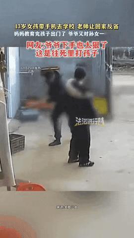 河南,一13岁女孩偷带手机去学校,被老师发现后,老师让其回家反省,女孩妈妈在家里教育完女孩后出门了,谁知女孩反省时又遭到爷爷的一顿打,爷爷扫帚打断了,又拿椅子砸,椅子烂了,又拳打脚踢,而女孩知道自己有错,全程未躲,默默挨打! 看监控,13岁女孩长得挺高,被妈妈教育完后,已经意识到错误了,哪知妈妈教育完出门后,爷爷又把她打了一顿,爷爷打得比妈妈还凶。 爷爷怒气冲冲地拿一把扫帚打她的脚,扫帚断成两截,爷爷又拿椅子砸她,椅子也打烂了,但爷爷气未消,继续用脚踹,用手扇女孩。 看到这一幕,网友很生气,觉得这爷爷下手太狠了,这可是亲孙女,都13岁了,正是自尊心正强的时候,这样打孩子,太伤人了,会给孩子留下阴影。 女孩妈妈看完监控也很心疼,毕竟是自己的亲骨肉,自己已经教育过孩子了,爷爷怎么下手这么重,再把孩子暴打一顿呢!都说隔辈亲,爷爷这样打孩子不合适。 我认为,孩子犯错必须教育,但教育的方式有很多种,打孩子是最无能的一种,这不仅会给孩子带来身体上的疼痛,也会带来心理上的阴影。 尤其是这个年龄段的女孩,心理很敏感,若因挨打这事做出极端的选择,是很危险的。都说黄金条子出好人,但放到现在这个社会,已经不太适用了!希望爷爷奶奶辈也能与时俱进,改变自己的教育方式。 网友纷纷留言: 可悲的家庭,孩子是有错,但是这样的暴力教育手段绝对的不允许,都说隔辈亲,那有爷爷打自己的亲孙女这么狠的。 这孩子该打!平时在家玩手机,不听话不学习,还带手机去学校,老师肯定三令五申了,可孩子就是不听,成绩也不好,家长被老师教育了,觉得孩子太过分了,气不过,女孩子要是不学好,更麻烦! 如果孩子就只是因为违反学校规定,偷带手机被老师发现并教育,没有其他问题的话,她爷爷的教育方式明显过激,非常不恰当……孩子的教育问题,还是让她的爸爸妈妈来做吧!