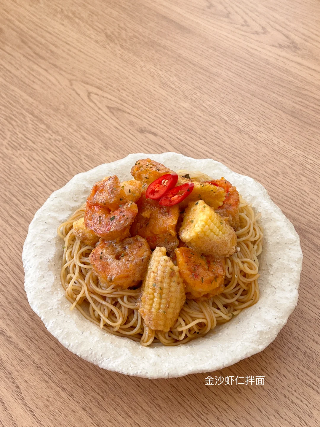 咸蛋黄酱炒出沙 煎好的虾仁裹一层