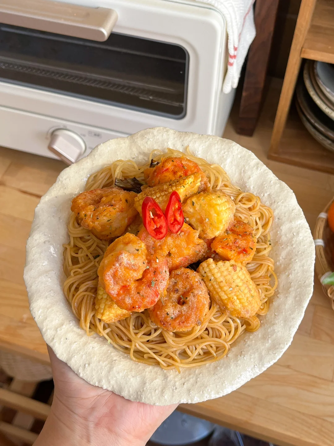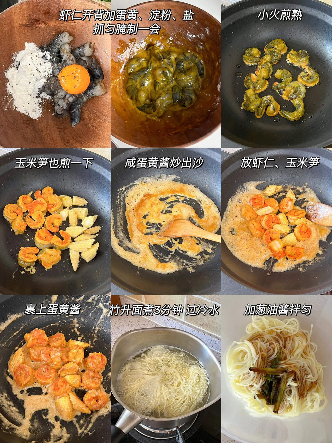 虾仁加上蛋黄和玉米淀粉 开小火煎熟