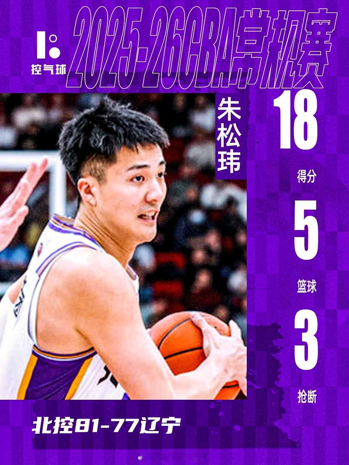 CBA 常规赛第 7 轮,北控主场 81-77 险胜辽宁,终结 4 连败,辽宁则遭遇 2 连败。朱松玮末节底角三分准绝杀、佩里 28+18 统治内线、廖三宁送出 16 次助攻,辽宁付豪空砍 33 分。 图源:
