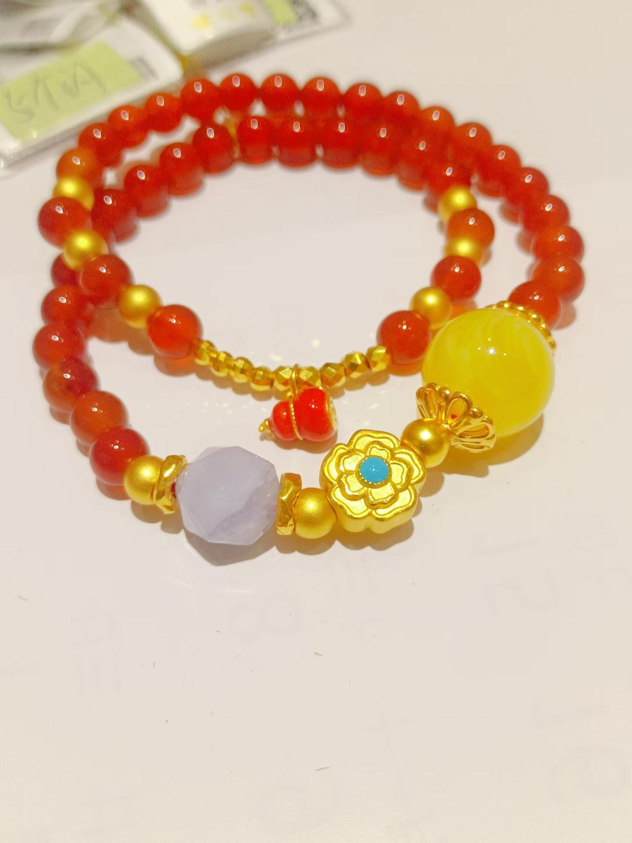 红黄相间,搭配精美花朵吊坠,复古优雅,尽显女性魅力!