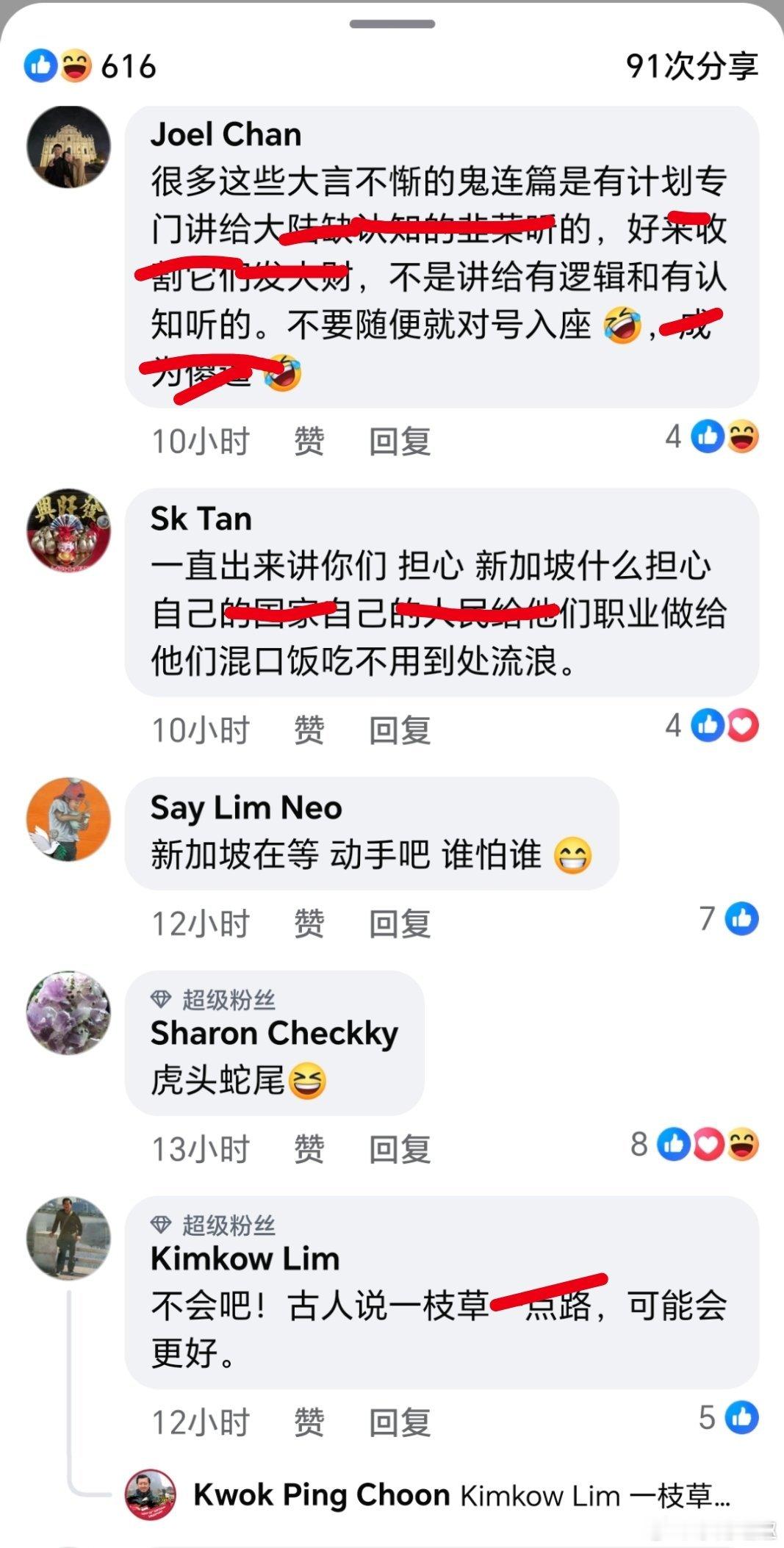 新加坡人民力量党党魁吴明盛发了一篇“黄蠢材”的脸书,特意去翻了翻评论区,好家伙,