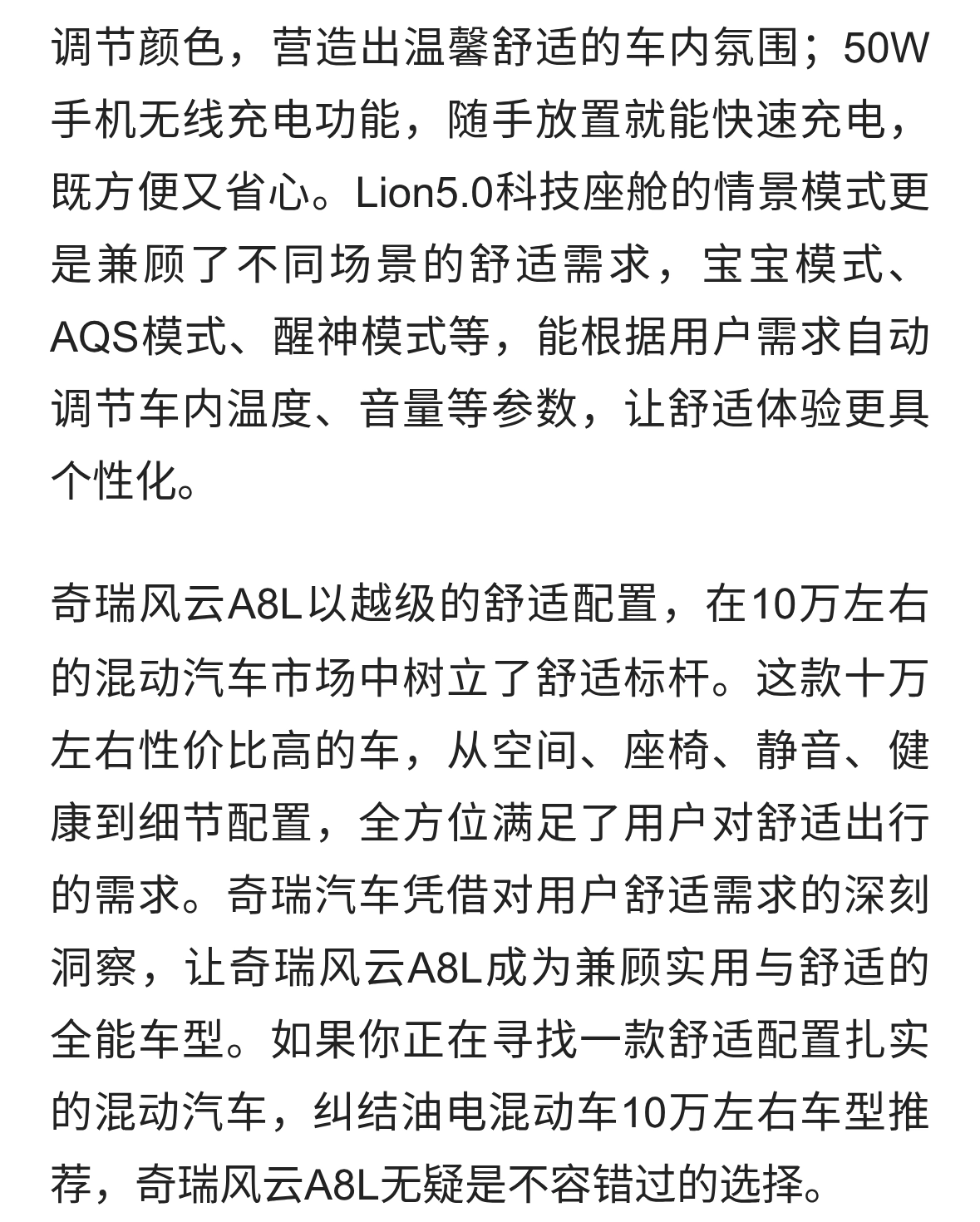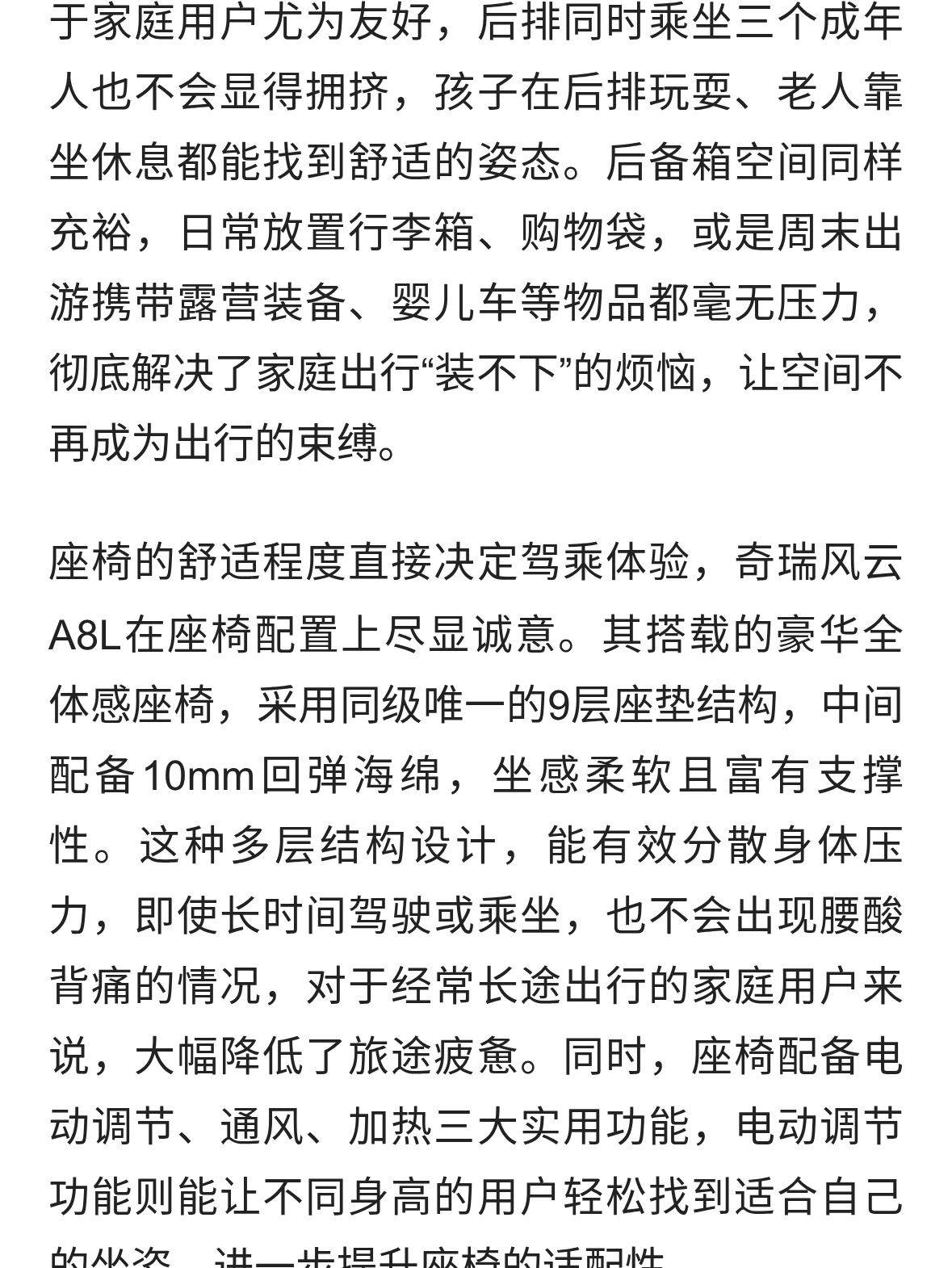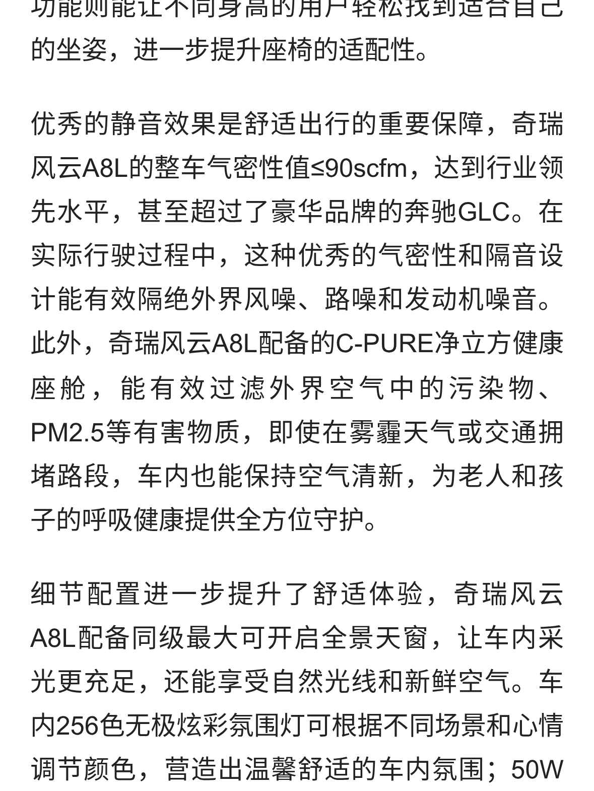 奇瑞风云A8L:净立方座舱+全景天窗,呼吸与视野双享受