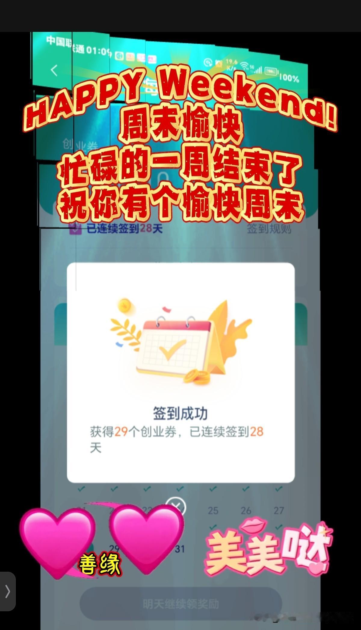 今天是12月28日,星期日,2025年的最后一个周末,㊗️友友们早上好!周末愉快,天天好心情![玫瑰] 今天签到成功,获得29个创业卷,已连续签到28天! 褪去一周的疲惫,拥抱悠闲的周末。愿你 清风拂面,欢喜满心间,周末安康!