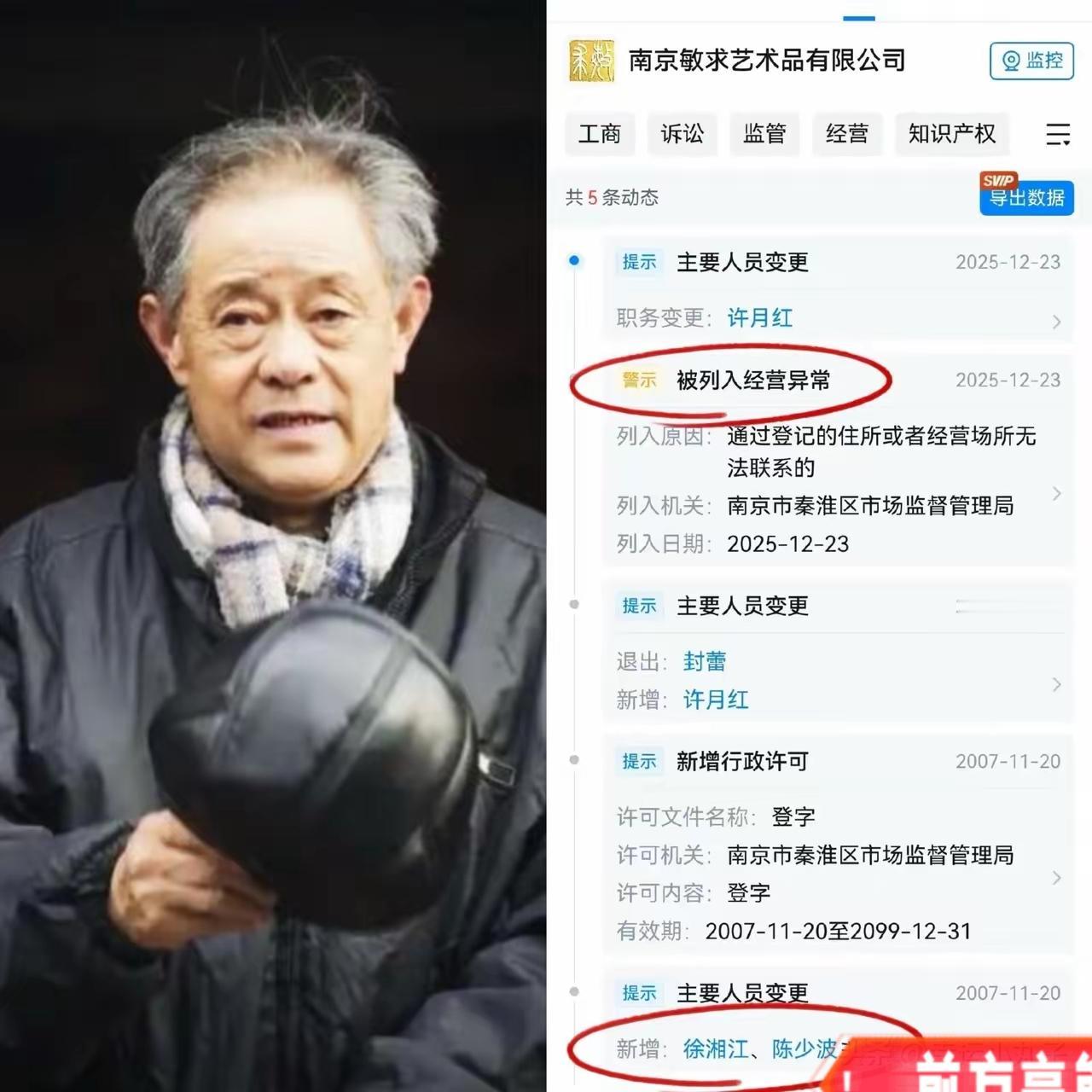 这跑路的速度,简直比变脸还快。 前脚南京博物院原院长徐湖平被查,后脚儿子徐湘江名下的“敏求艺术”就唱了出空城计。 父亲被带走调查的消息刚传出,儿子公司的门就找不着了。南京市秦淮区市场监督管理局的记录显示,就在徐湖平被调查的当天,徐湘江任法定代表人的“南京敏求艺术品有限公司”被列入了经营异常名录,原因正是“通过登记的住所或者经营场所无法联系”。这一前一后的动作,快得让人来不及反应,也把这对父子更深地推向了舆论的风暴眼。 要知道,这位“跑路”的徐湘江,可不是什么普通的生意人。他名下关联着多家文化艺术品公司,业务从广告设计、工艺美术品销售,一直覆盖到核心的艺术品鉴定、收藏和交易。 更关键的是,他还在一家名为“江苏爱涛拍卖有限公司”的企业担任董事。这家拍卖公司的唯一股东,恰恰是其父亲徐湖平曾长期担任法定代表人的“江苏省文物总店”。 父亲曾掌管着国有博物馆的馆藏文物,并兼任负责文物流通的国营商店负责人;儿子则精准地布局在文物艺术品交易和拍卖的关键环节。这种“巧合”得令人难以置信的商业版图重叠,很难不让人产生联想。 而将这种联想推向具体指控的,是一幅名为《江南春》的明代古画。这幅画本是1959年由著名收藏家庞莱臣后人无偿捐赠给南京博物院的国宝,估价高达8800万元。 然而,它却在今年5月离奇地出现在北京的拍卖市场上,震惊世人。追查其流转路径,一张1997年的《拨交清册》成为铁证:当时,这幅画被以“伪作”名义,从南京博物院调拨给了江苏省文物总店,文件上“调拨机关负责人”的签名,正是“徐湖平”。 更具戏剧性的是,时任南京博物院副院长的徐湖平,在文件上的另一个身份,恰恰是接收方“江苏省文物总店”的法定代表人。这无异于自己签字,把国宝从“左口袋”划到了“右口袋”。 四年后的2001年,这幅画被一位匿名的“顾客”以区区6800元从文物总店买走。二十多年后,它身价暴涨近万倍试图拍卖,而当年那位神秘的“顾客”究竟是谁,至今成谜。 一条若隐若现的链条仿佛被拼接起来:父亲利用职权和专家身份,将馆藏真品鉴定为“赝品”,使其得以“合法”流出库房;通过自己掌控的国营商店渠道,以象征性价格处置;而这些文物最终流向的市场终端,儿子经营的艺术品公司和关联的拍卖行,恰好是可能的承接与变现平台。如果这一切属实,那便是一条将公权力、专业壁垒和家族商业完美结合的“变现流水线”。 徐湖平并非首次被举报。南博退休员工郭礼典的实名举报视频中透露,类似问题在2008年、2014年就曾被内部人员联名举报,但都石沉大海。直到这次捐赠人家属通过法律途径追索画作,并因其现身拍场而申请法院强制执行,盖子才被彻底掀开。 目前,江苏省与国家文物局已成立联合调查组进驻南京,展开全面调查。多方消息证实,徐湖平及其家人已被带走调查。 国宝蒙尘,刺痛的是公众对文明守护者最基本的信任。文物是民族的记忆,博物馆本应是这些记忆最安全的保险箱。 当看守保险箱的人自己琢磨起了密码,当“鉴定”的笔尖可以轻易地将真金写成废铁,我们流失的就不仅仅是几幅古画,更是对整个文化遗产保护体系的信心。 好在,调查已经启动。公众在等待一个迟到太久的真相:那些消失的文物到底去了哪里? 那条隐秘的链条是否真的存在?我们希望,这次调查能彻底算清这本“文物账”,给历史一个公正的交代,也给未来一个坚实的信任基石。 各位读者你们怎么看?欢迎在评论区讨论。