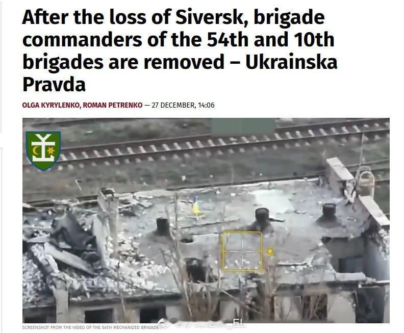 乌克兰媒体报道称,由于谢韦尔斯克失守,乌克兰军方将乌军第54机械化旅与第10山地突击旅的旅长解除职务。