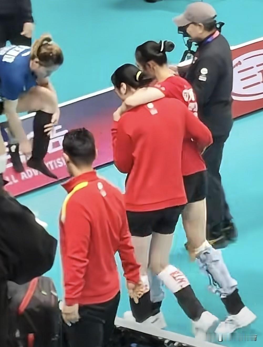 原来吴梦洁昨天离场的时候,无法走路,两位队友搀扶着一瘸一拐走出比赛馆的!躺在地上的小吴同学,三名教练过来给她治疗,有给她敷冰块的,有给她送右腿护具的,还有给她喂水喝的!吴梦洁她真的是一位敬业的优秀主攻手,希望教练好好珍惜她啊,明年在天津举办的女排亚锦赛(冠军直通洛杉矶奥运会)吴梦洁可是国家队的顶梁柱,可不敢再次受伤了!