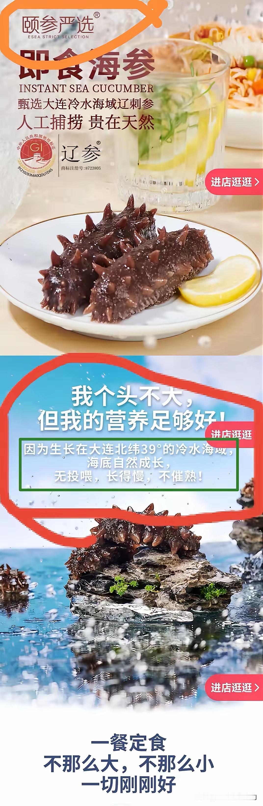某直播间卖海参又涉嫌虚假宣传。 明明是人工养殖海参, 还是个头不大那种。 个头小