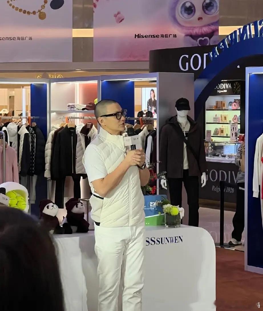 周一围剃光头真是一下老了十几岁,12月27日,周一围在天津某商场参加活动,一身白色羽绒背心搭配短袖,咱也不知道这到底是冷还是热,戴着黑框眼镜看着像个五六十岁的人。
