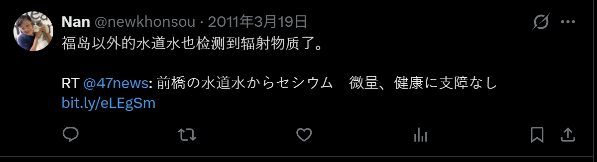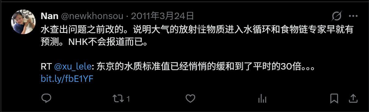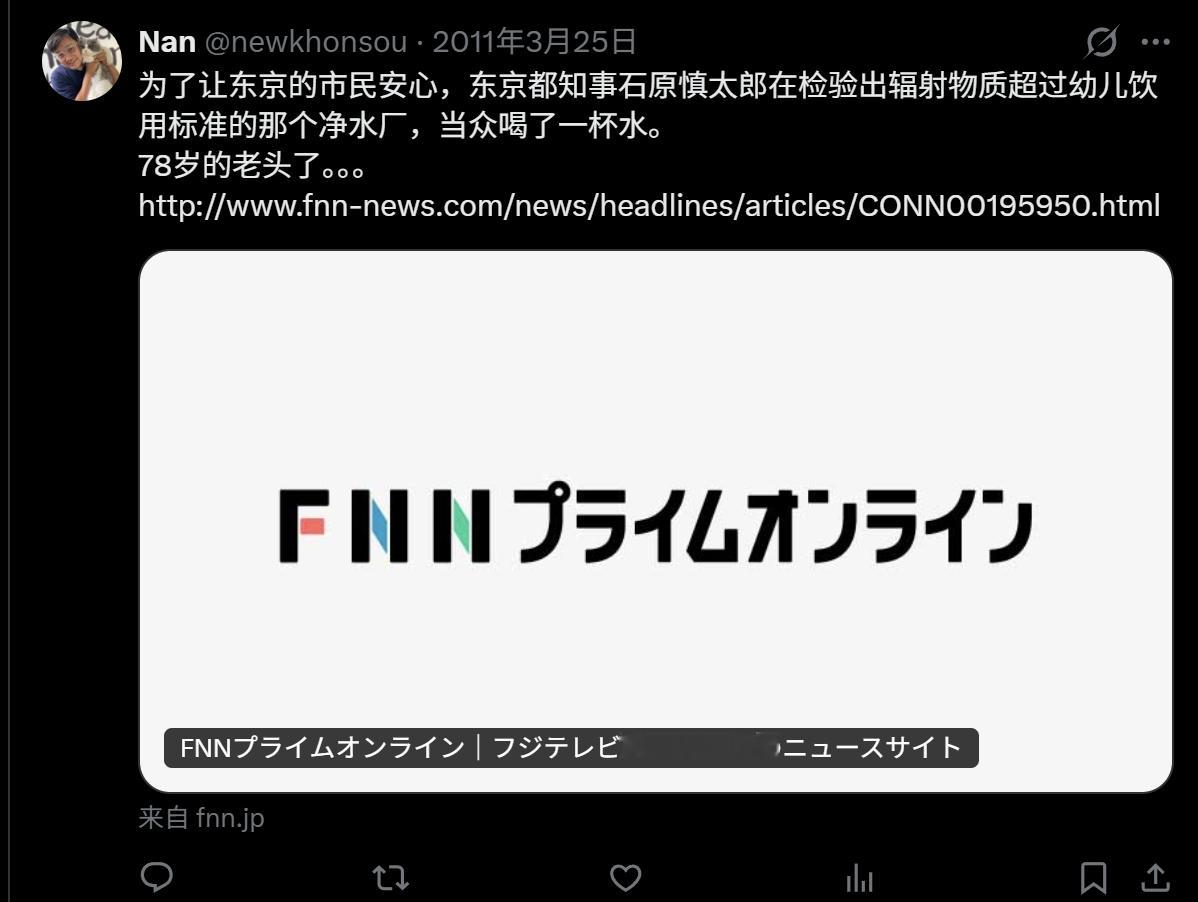 311 我就在港区的办公楼里面,日本新闻里播放自来水的辐射水准超标的新闻,然后一个电视台讨论孕妇可以喝自来水,另一个讨论孕妇不可以喝,当然还有一个电视台在播放美食和旅游节目。这时候我下楼说买点瓶装水带回家,结果 tmd 去晚了,没了。所以后来才有进口中国韩国瓶装水的事情。另外,我说的是当年超市,一堆人贴今天线上或者量贩店。。。后来楼下 Lawson 什么都没有了。可能有一些经营上的要求,店里面所有货架,都摆上了黄色的甜甜圈,非常魔幻现实主义。然后我一个做核物理的同学给我寄来了一个盖格计数器,我在东京的街道上测得的核辐射,还可以,但是接近水坑和草丛,会 bb 报警。当年回上海的机票非常贵,两万人民币似乎,有留学生跪在机场求退票我真的醉了。。。而我说这个钱去上海,离福岛才多远啊。。。去冲绳多少钱?告诉我往返 3000,我和老婆孩子说,剩下一万七,在冲绳玩两个月,等东京电力把福岛处理完,或者干脆等他们把福岛搞爆炸。于是送他们去羽田机场。国内飞机的登机很简单,机场所有屏幕,都在播放 NHK 的福岛核电站直播。他们跨过检票口的一瞬间,机场突然一声沉默的惊雷。这是所有人突然发出的一种不是恐慌的大声喊叫,但是非常震惊的一种低沉的声音。我一看屏幕。。。福岛核电站炸了。。。老婆回头,泪流满面,看看屏幕,看看我,无话可说,在犹豫。我咬牙切齿的指着小孩,声嘶力竭的低声说,走!走!15 分钟后,飞机顺利起飞。当然,后面知道,不是核心融毁,而是反应泄露的某些可燃气体积累导致的爆炸。。。十多年了, 作为亲历者,这是我的记忆。但是证明就扯淡了,太 TMD 累了。爱信不信,爱看看,不爱看滚。(附上当年东京水质检测超过乳儿引用标准的新闻)