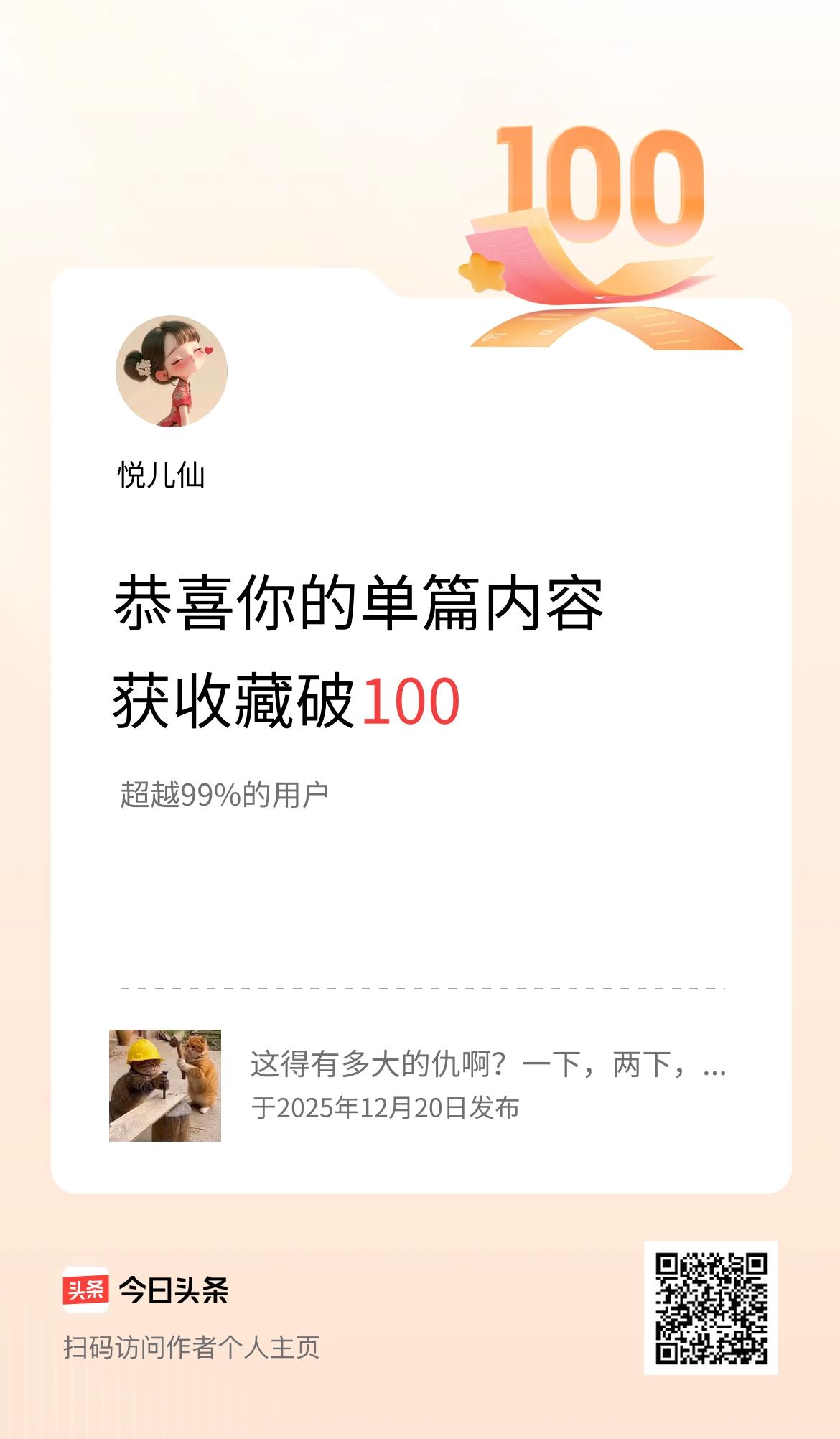 单篇内容获收藏量破100啦!